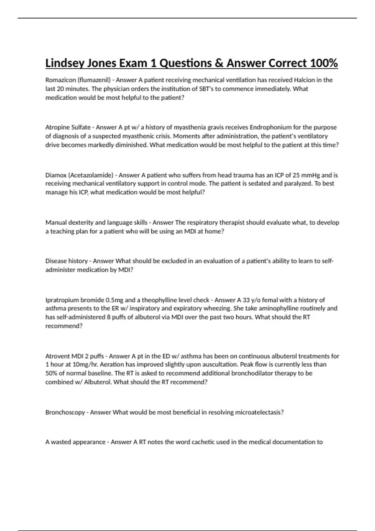 Lindsey Jones Exam 1 Questions & Answer Correct 100%