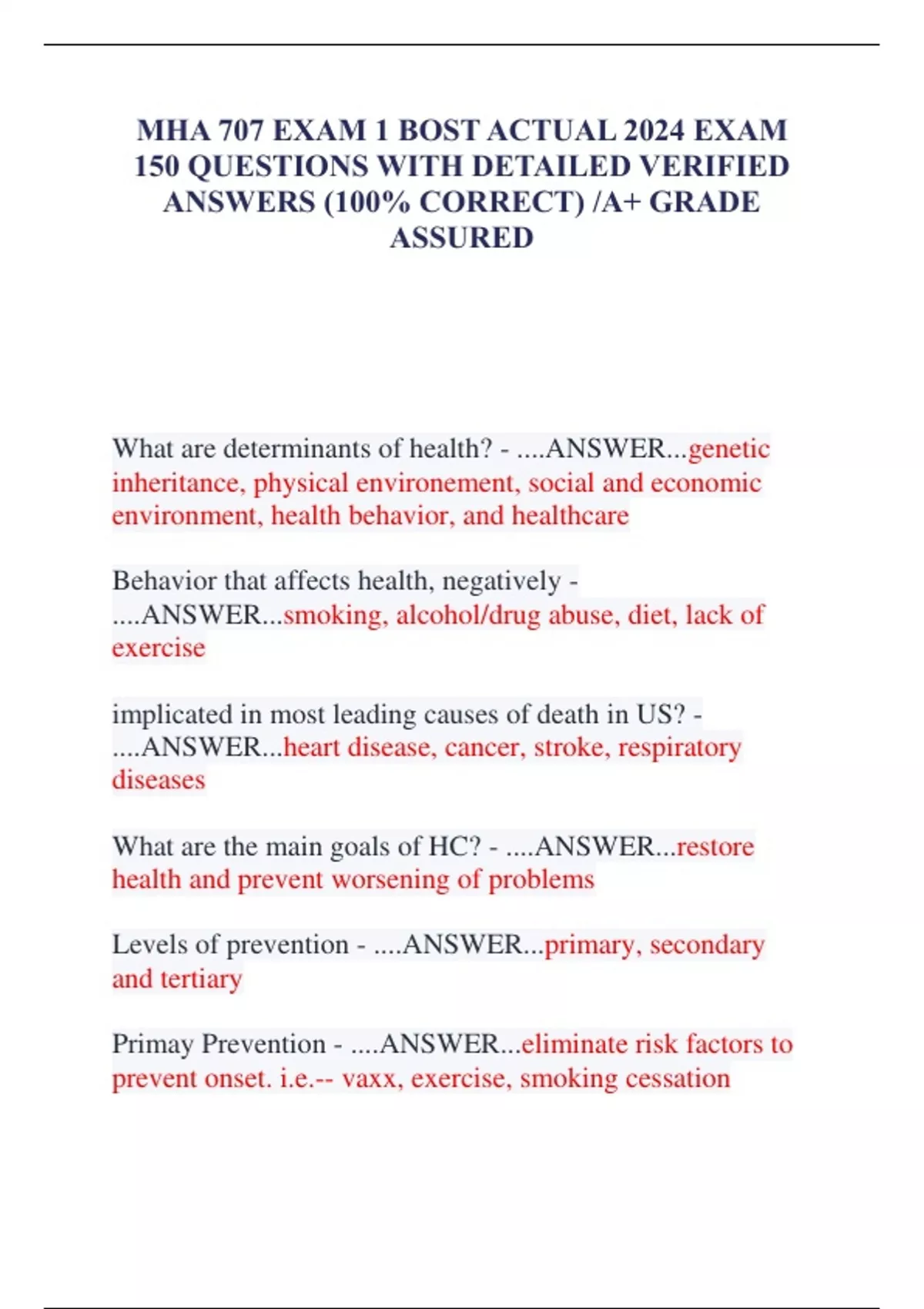 MHA 707 EXAM 1 BOST ACTUAL 2024 EXAM 150 QUESTIONS WITH DETAILED VERIFIED ANSWERS (100% CORRECT) /A+ GRADE ASSURED