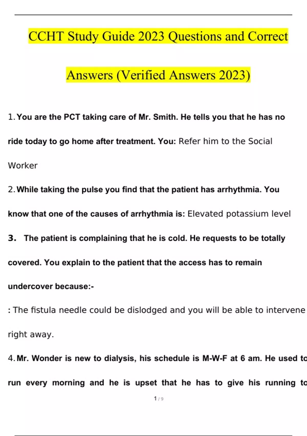 CCHT STUDY BUNDLE PACK SOLUTION 2023 (Questions and Answers )(Verified Answers)