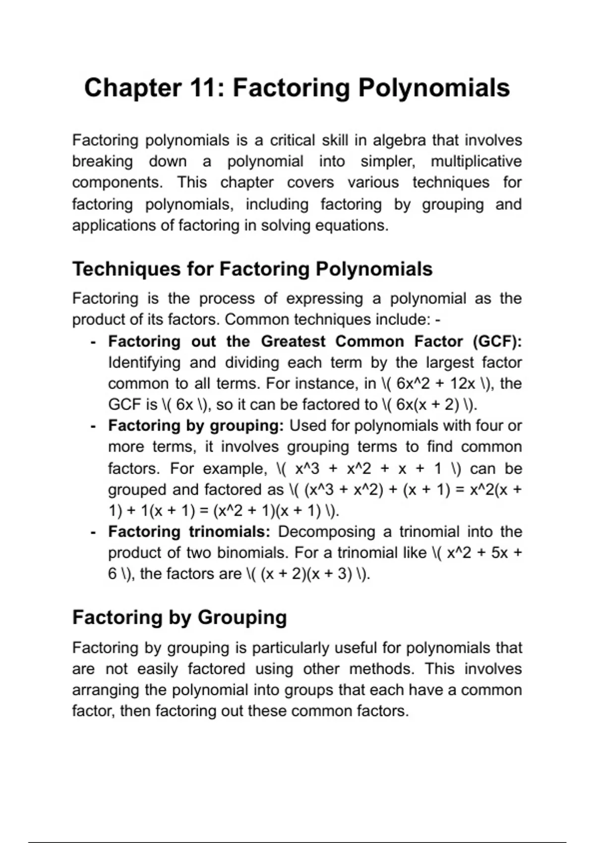 Techniques for Factoring Polynomials