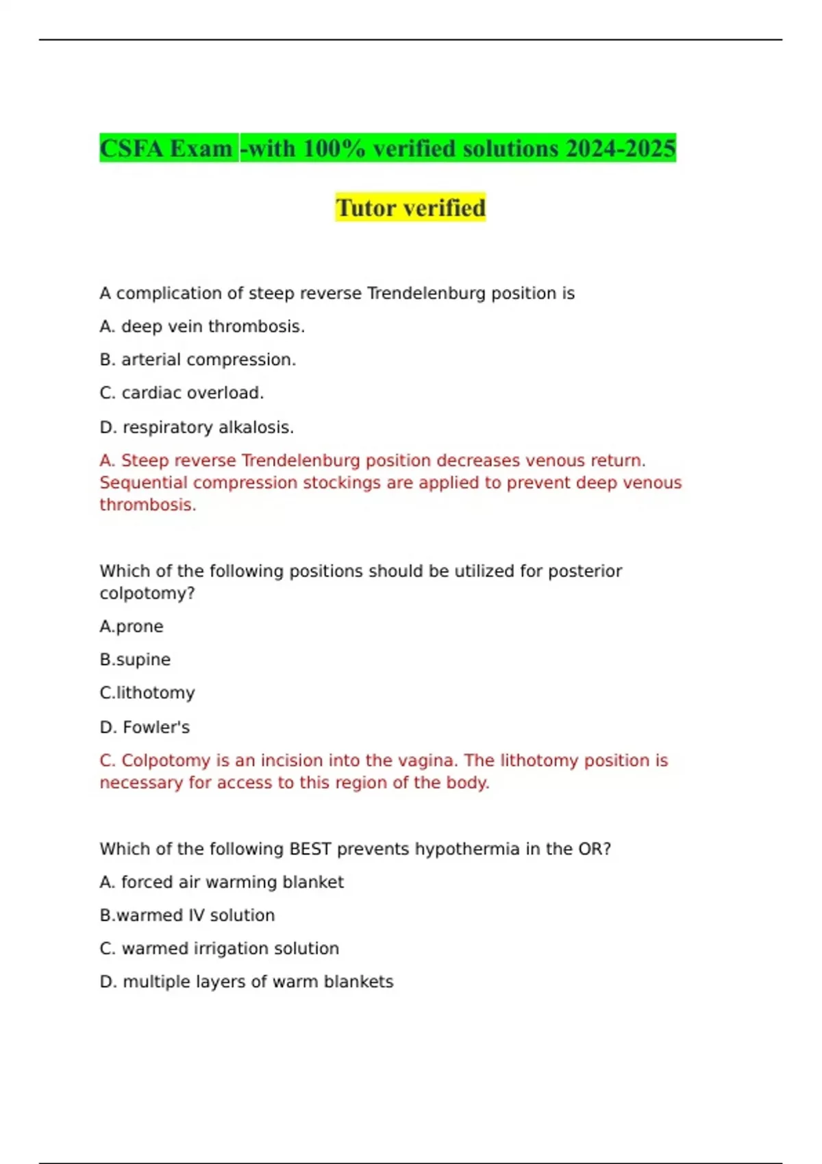 CSFA Exam -with 100% verified solutions