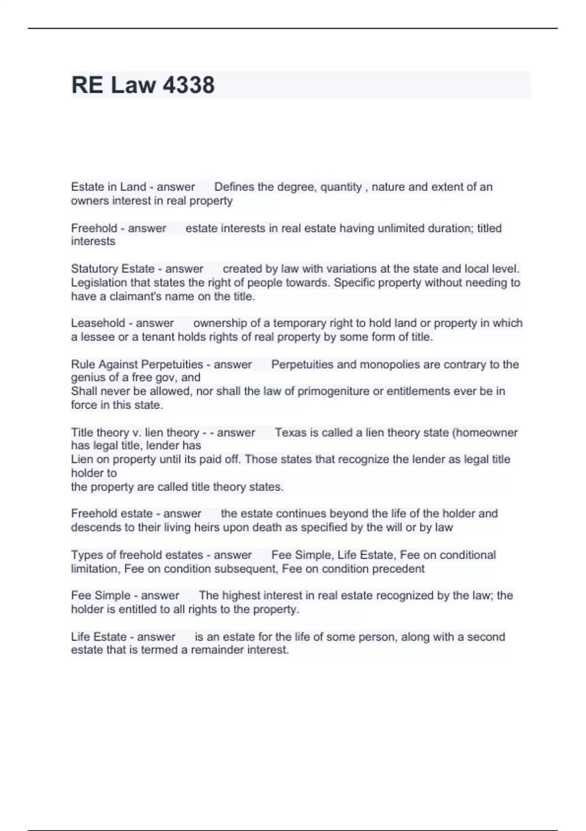 RE Law 4338 Questions and Answers Latest Updated 2024