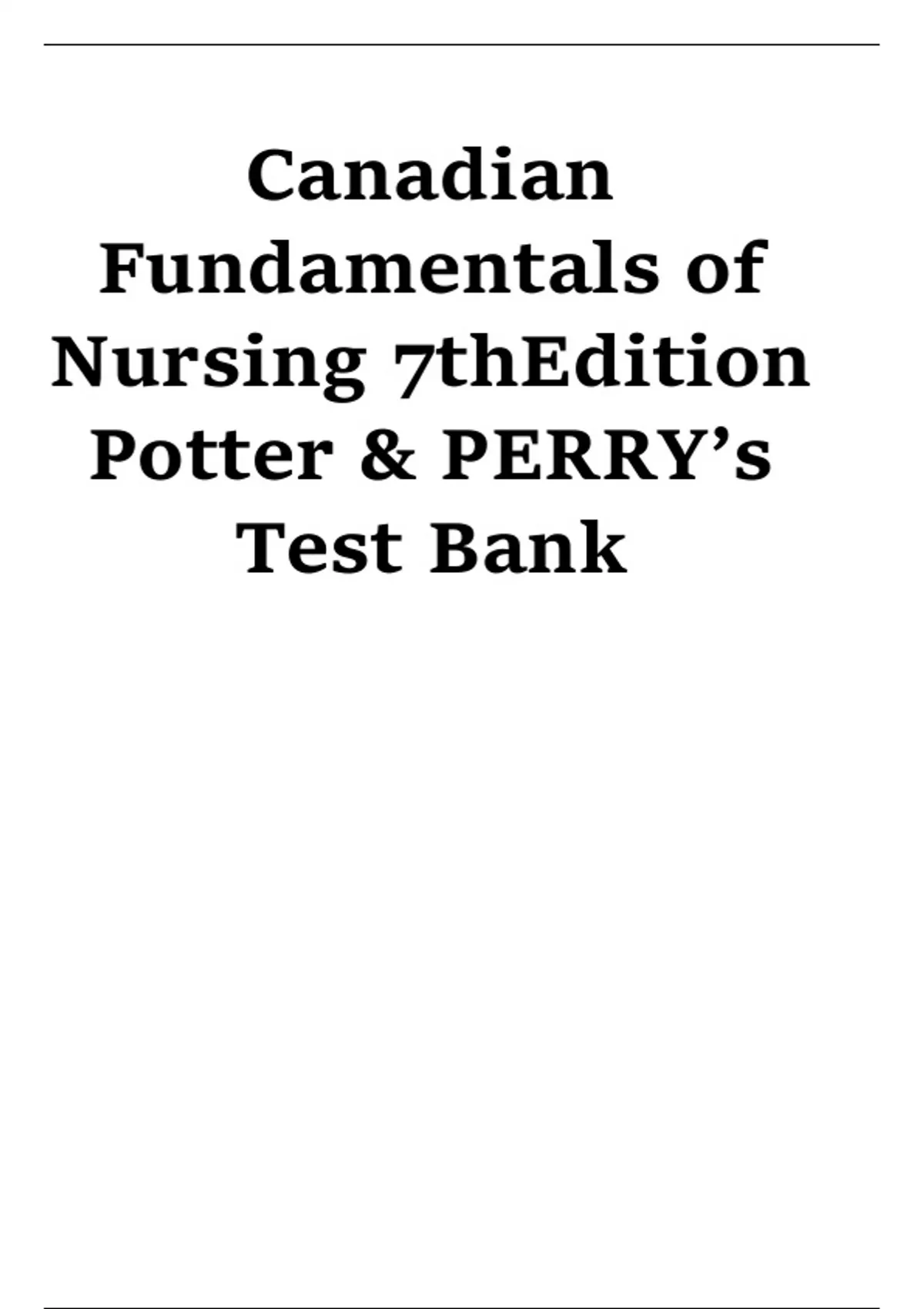 Canadian Fundamentals of Nursing 7thEdition Potter & PERRY’s Test Bank