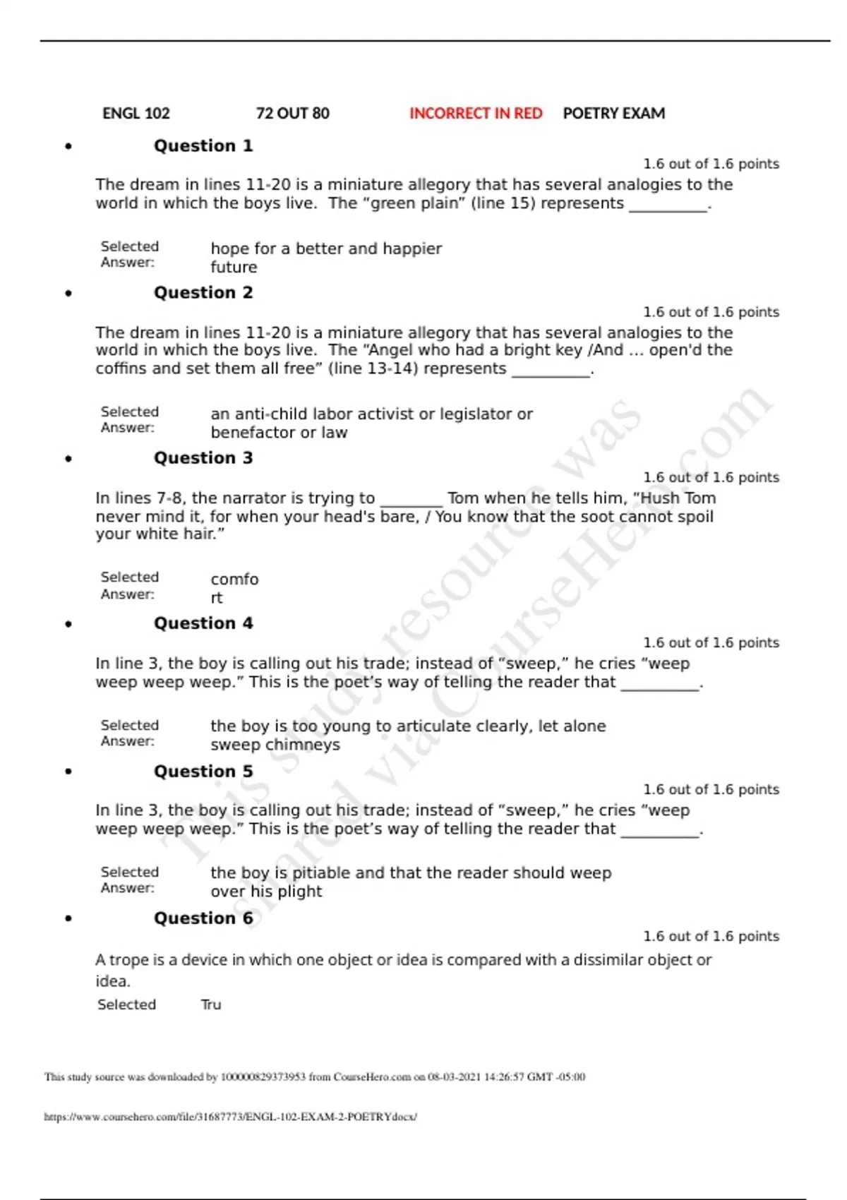 ENGL 102 72 OUT 80 INCORRECT IN RED POETRY EXAM