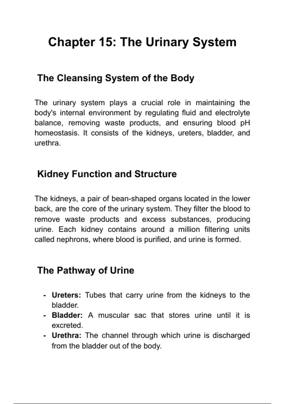 Summary The Urinary System