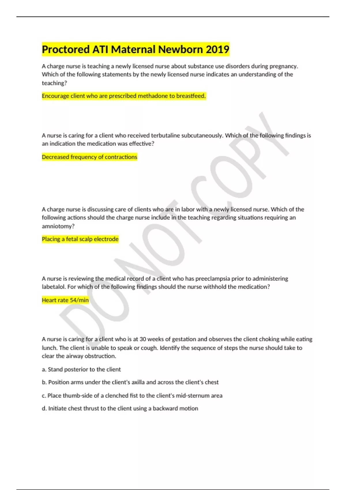 Proctored ATI Maternal Newborn 2019Proctored ATI Maternal Newborn 2019Proctored ATI Maternal Newborn 2019Proctored ATI Maternal Newborn 2019