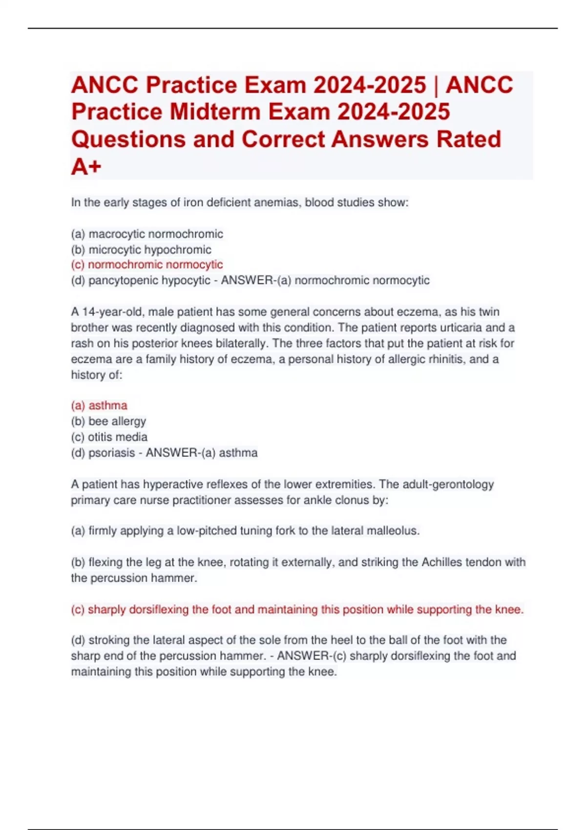 ANCC Practice Exam | ANCC Practice Midterm Exam Questions and Correct Answers Rated A+