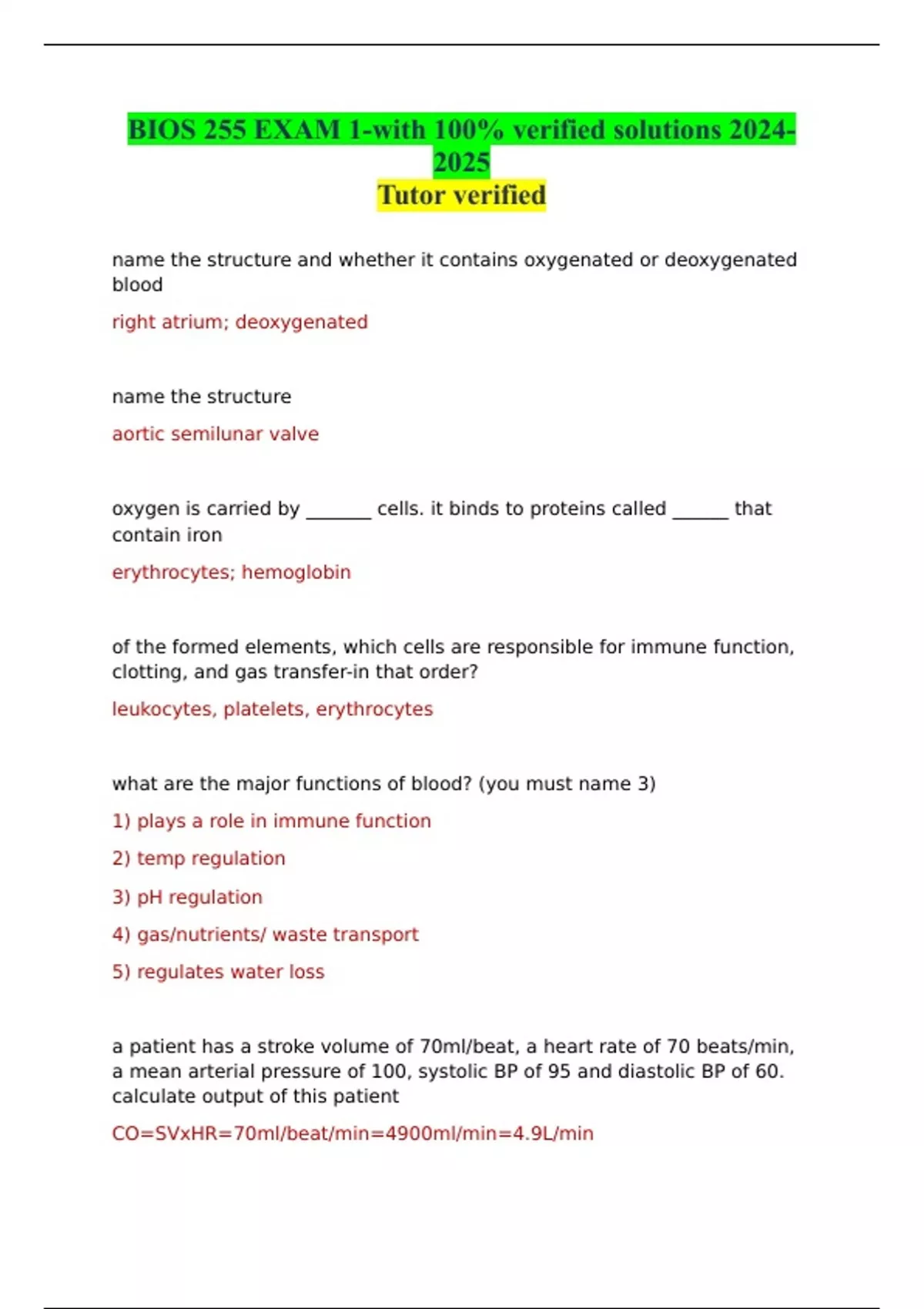 BIOS 255 EXAM 1-with 100% verified solutions