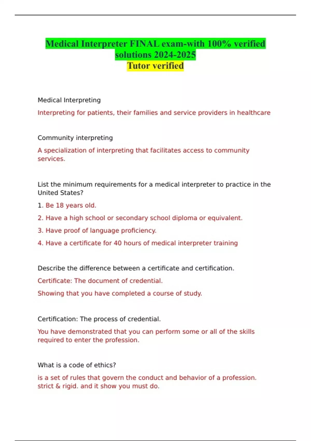 Medical Interpreter FINAL exam-with 100% verified solutions