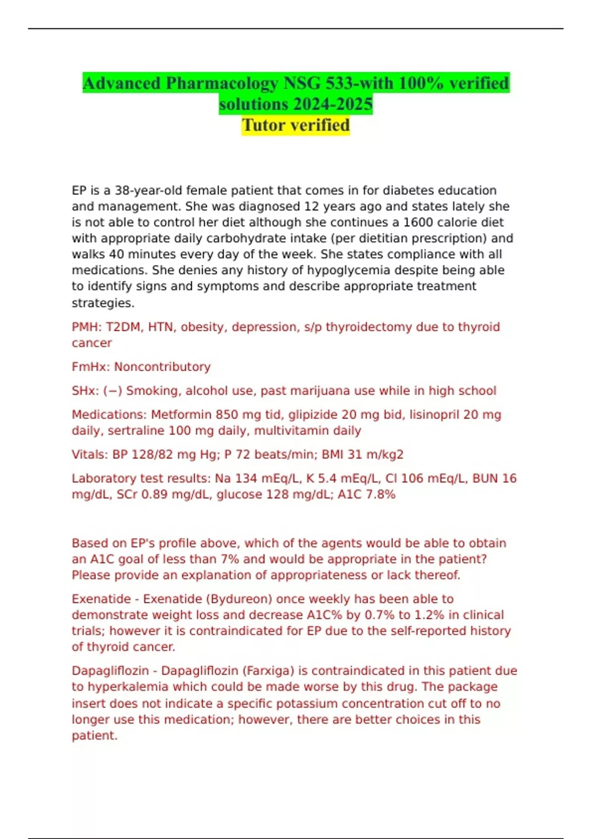 Advanced Pharmacology NSG 533-with 100% verified solutions
