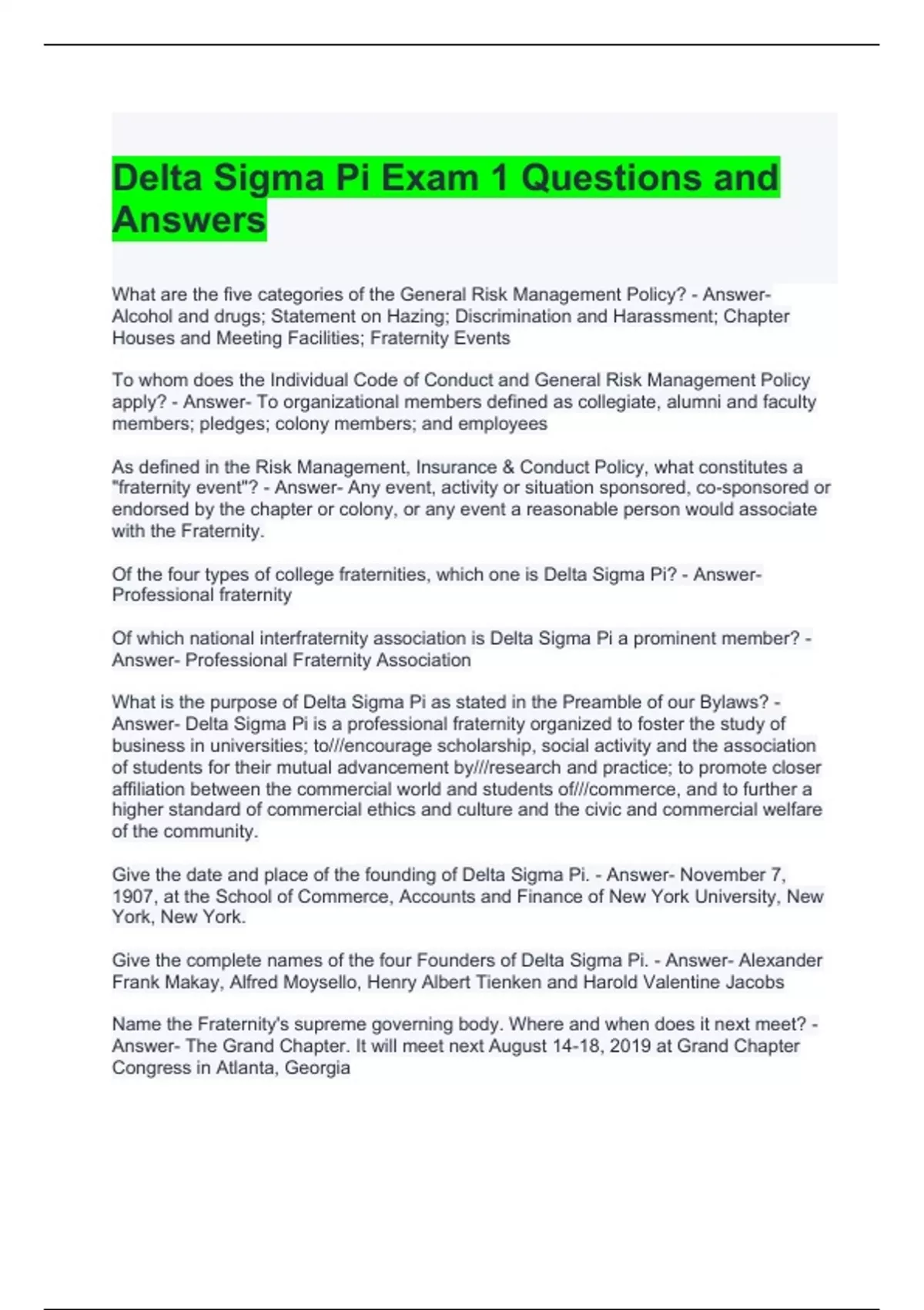 Delta Sigma Pi Exam 1 Questions and Answers
