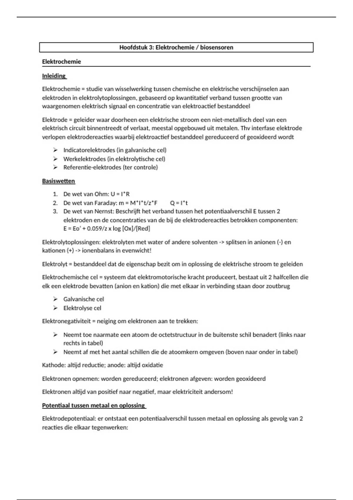 Hoofdstuk 3: Elektrochemie / biosensoren