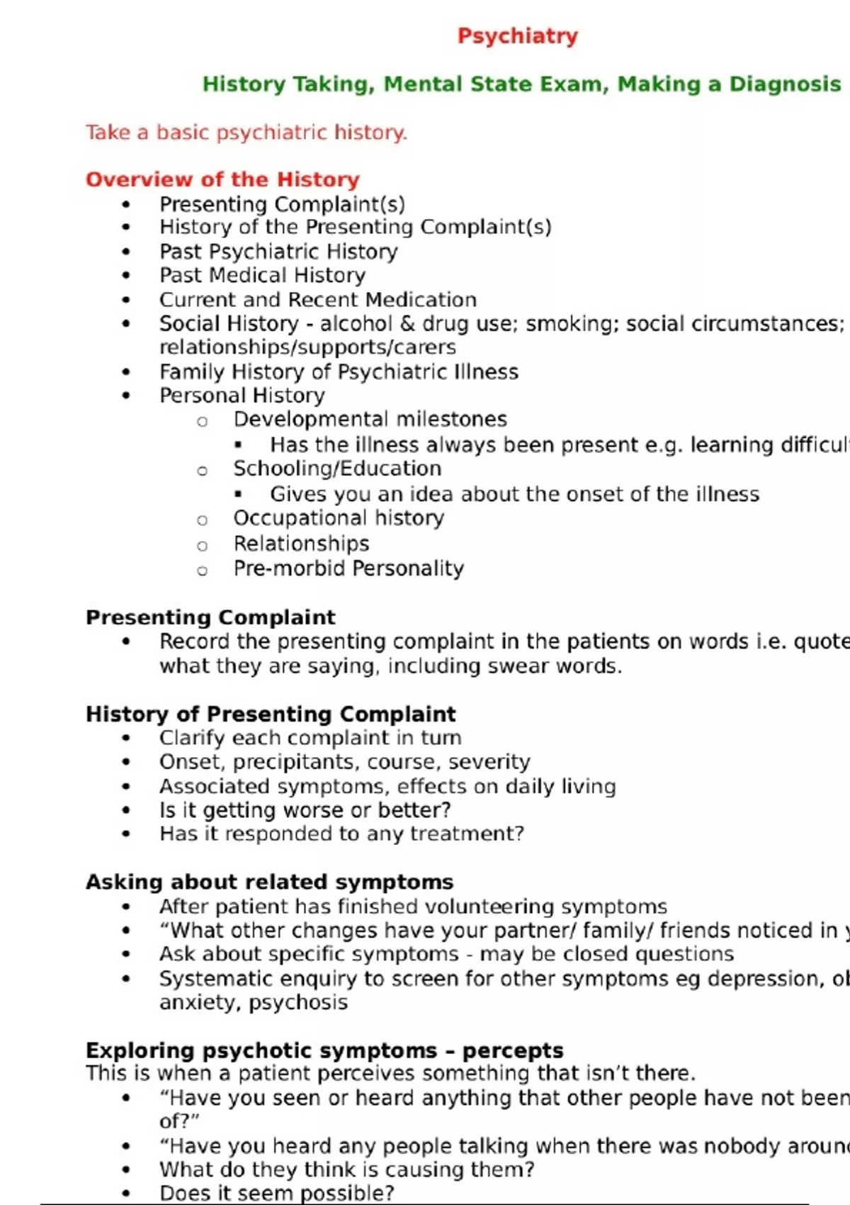 Psychiatry History Taking, Mental State Exam, Making a Diagnosis, Take a basic psychiatric history.