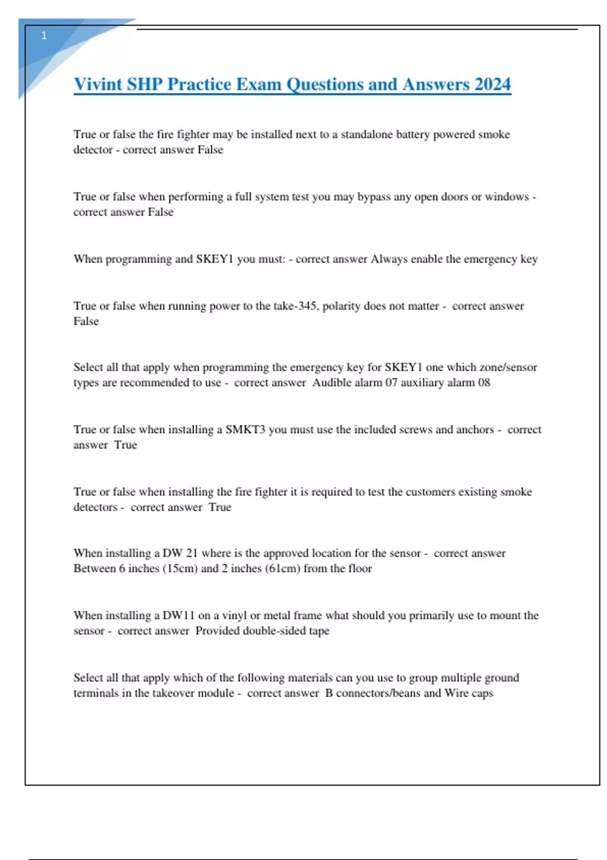 Vivint SHP Practice Exam Questions and Answers 2024