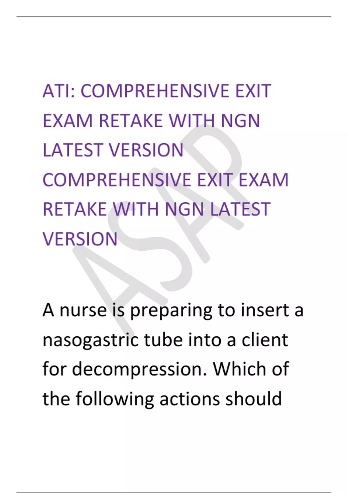 ATI: COMPREHENSIVE EXIT EXAM RETAKE WITH NGN LATEST VERSION COMPREHENSIVE EXIT EXAM RETAKE WITH NGN LATEST VERSION