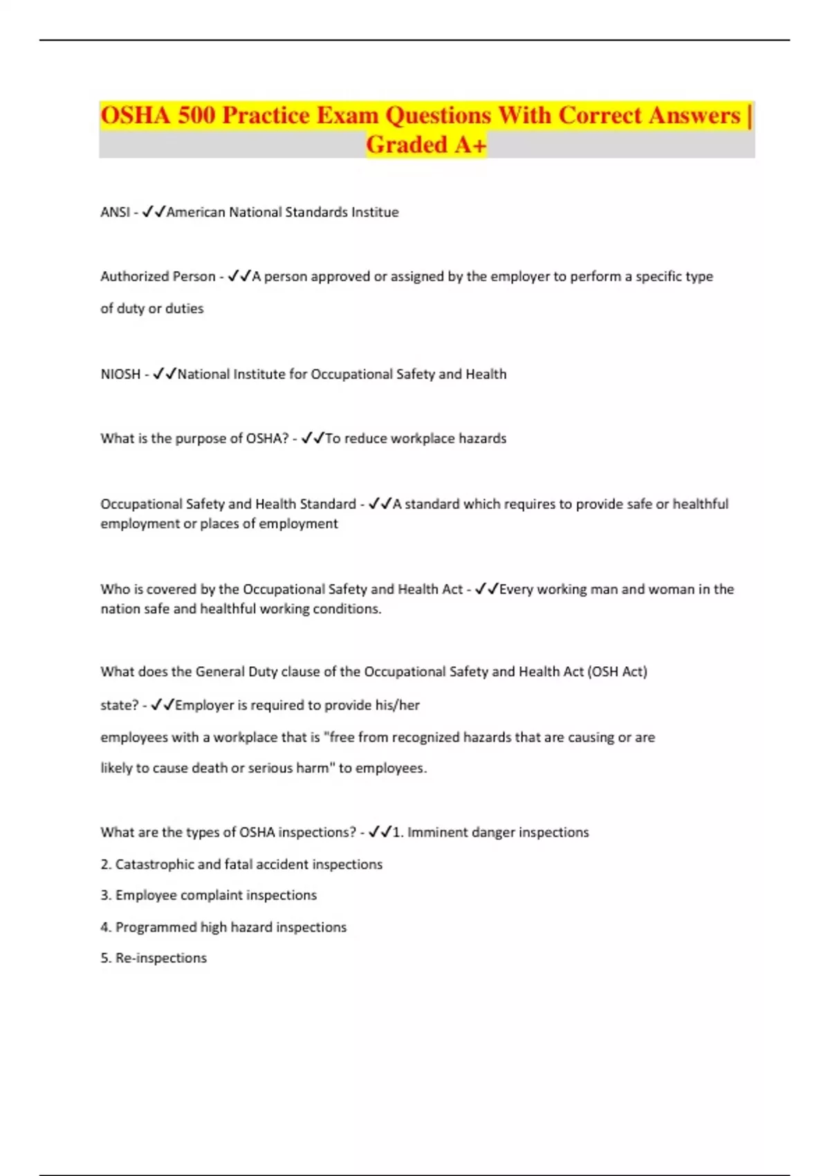OSHA 500 Practice Exam Questions With Correct Answers | Graded A+