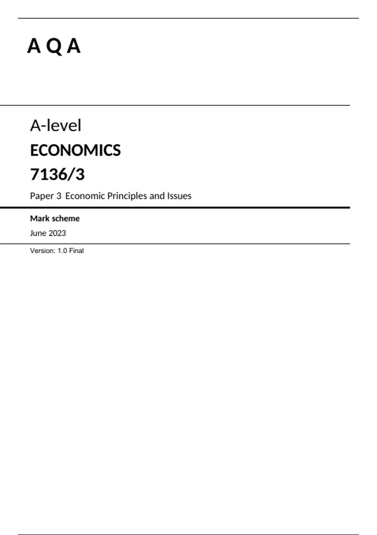 A Q A A-level ECONOMICS Paper 3 Economic Principles and Issues Mark scheme June 2023