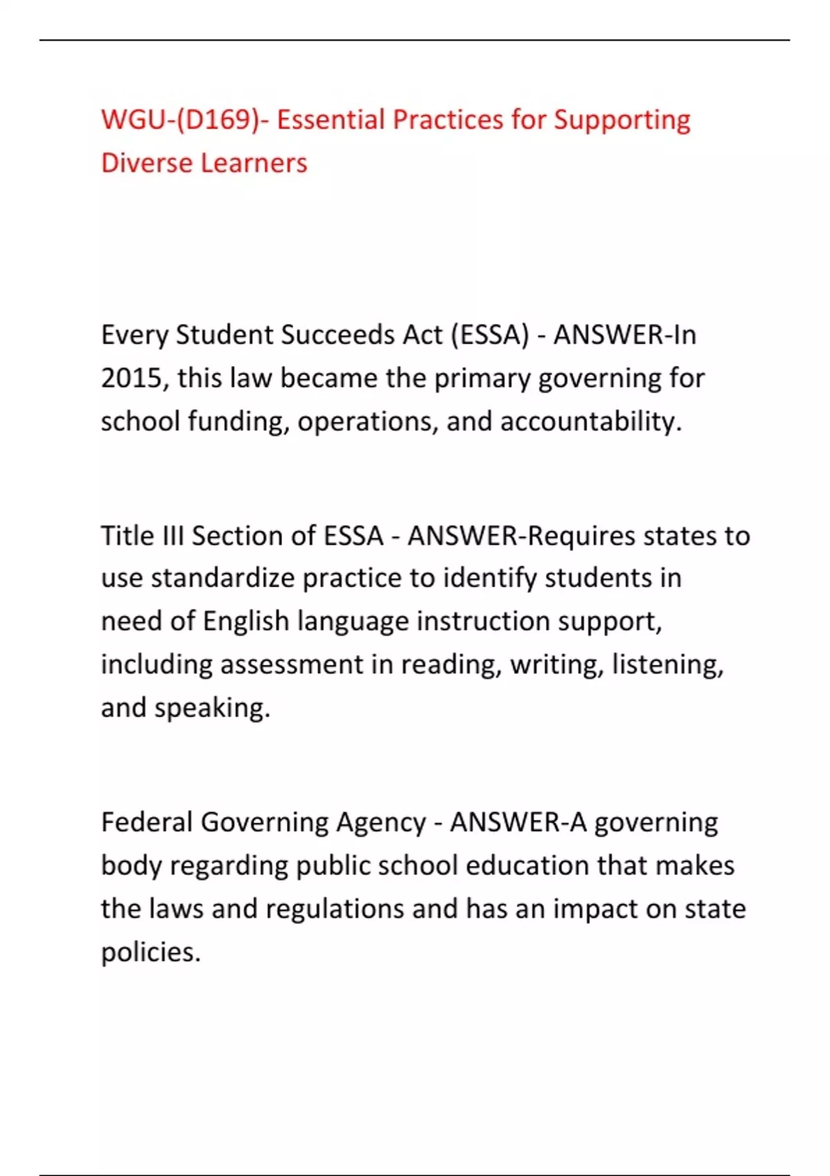 WGU-(D169)- Essential Practices for Supporting Diverse Learners