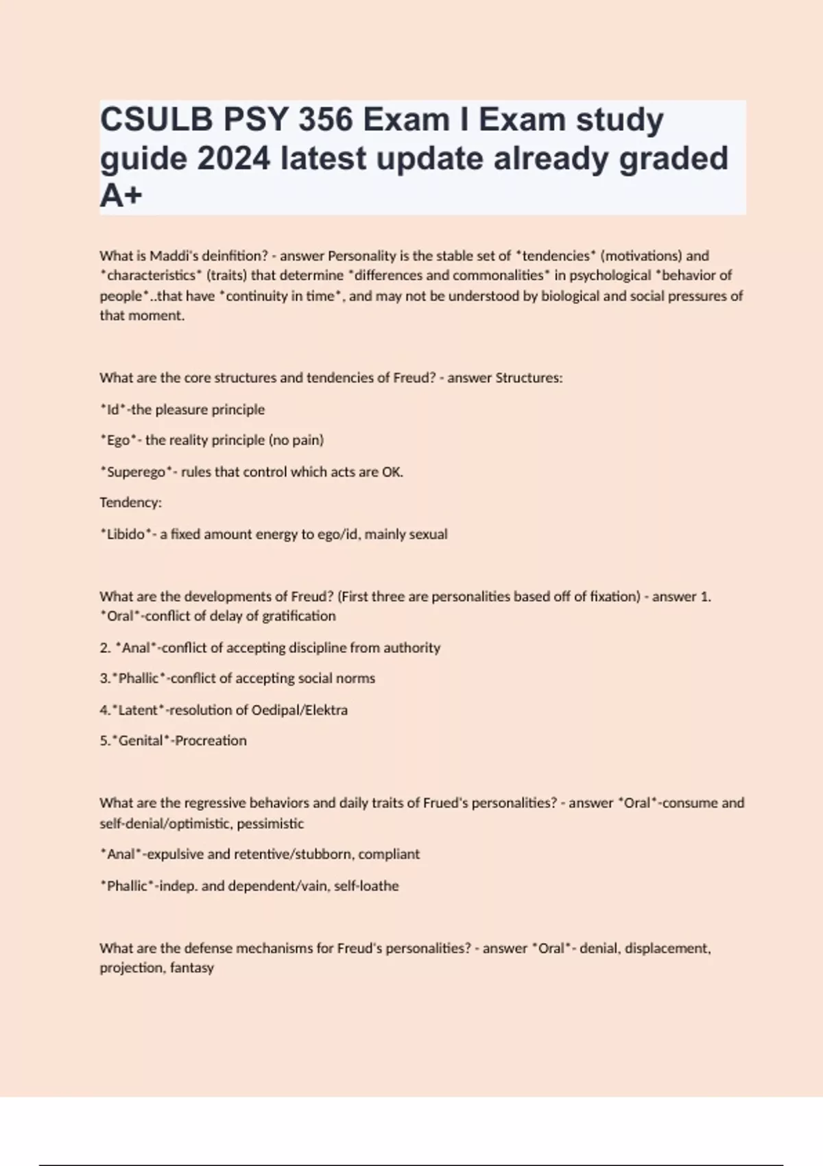 CSULB PSY 356 Exam I Exam study guide 2024 latest update already graded A+
