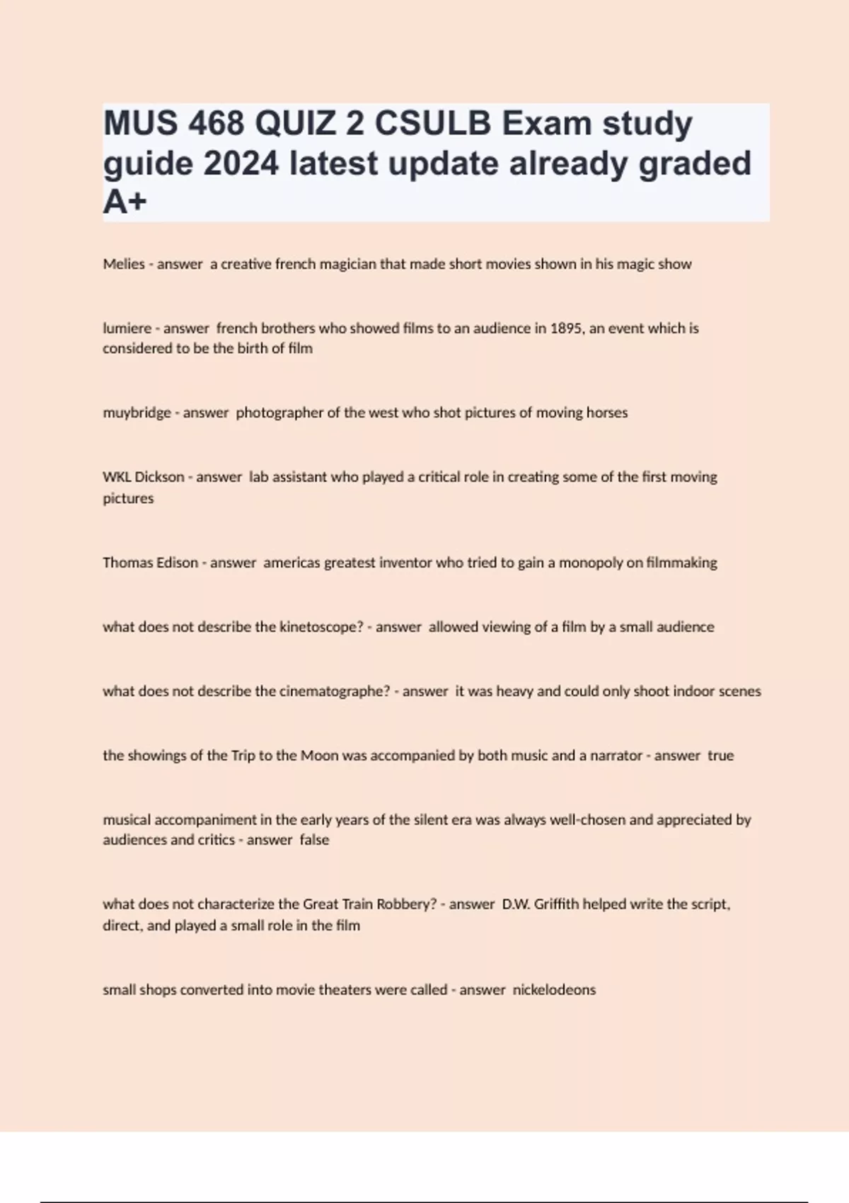 MUS 468 QUIZ 2 CSULB Exam study guide 2024 latest update already graded A+.