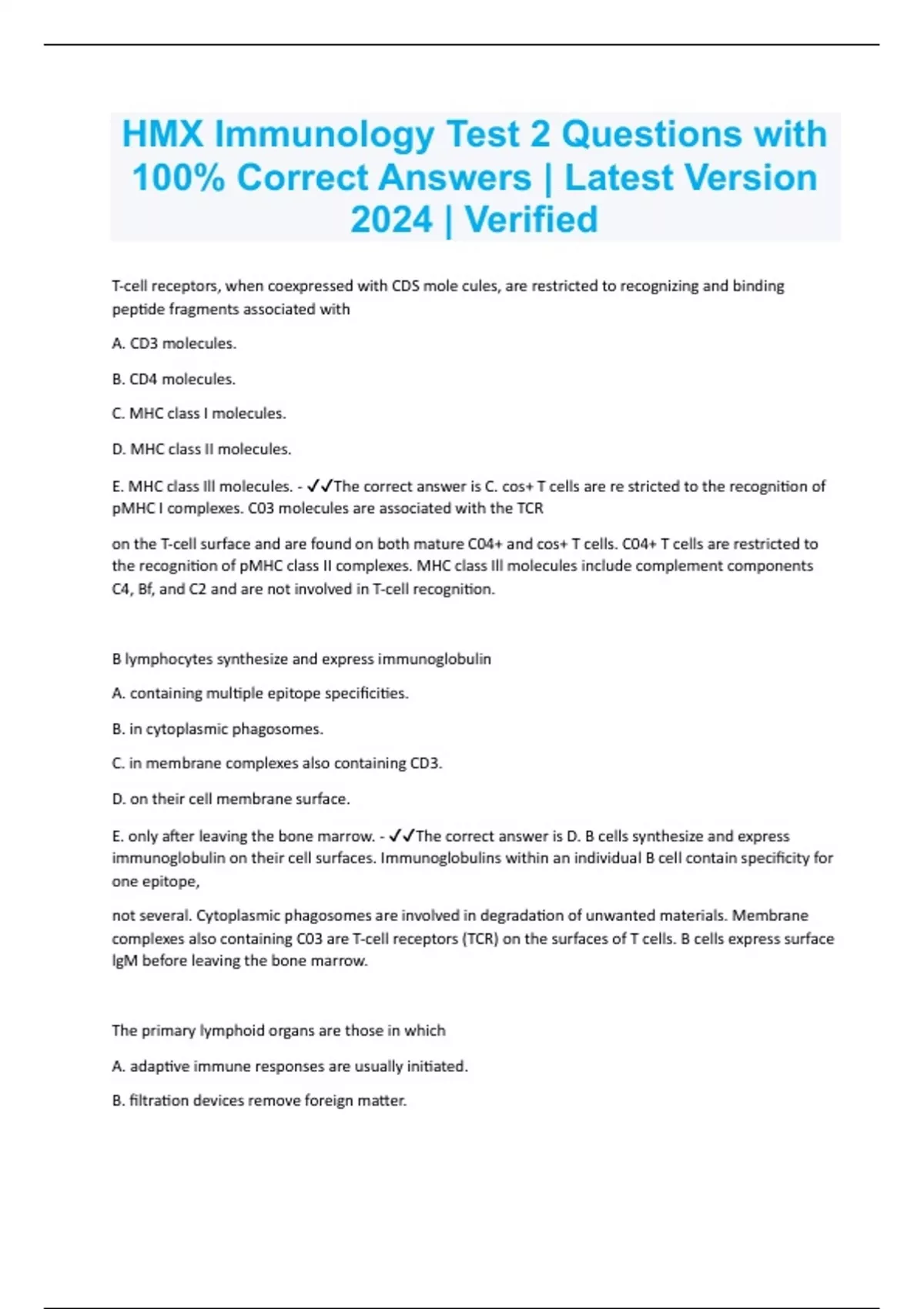 HMX Immunology Test 2 Questions with 100% Correct Answers | Latest Version 2024 | Verified
