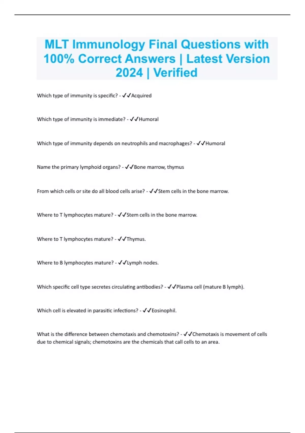 MLT Immunology Final Questions with 100% Correct Answers | Latest Version 2024 | Verified