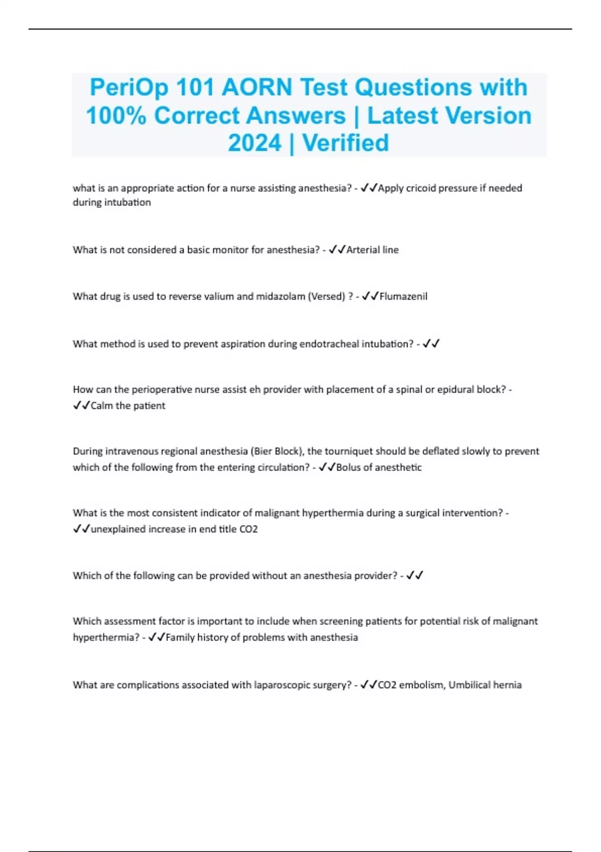 PeriOp 101 AORN Test Questions with 100% Correct Answers | Latest Version 2024 | Verified