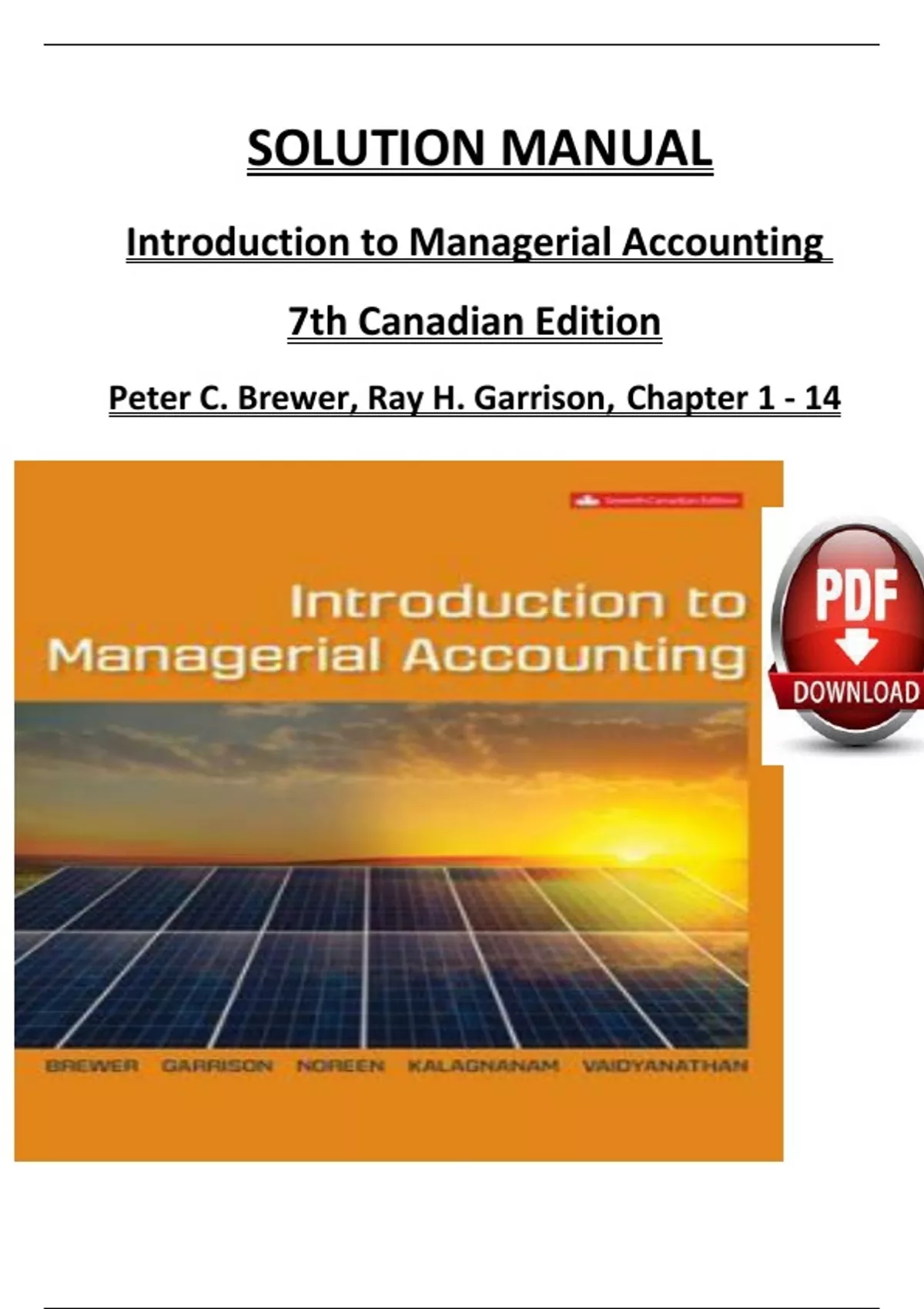 Solution Manual for Introduction to Managerial Accounting, 7th Canadian Edition 2024, by Peter C. Brewer, Ray H. Garrison, Verified Chapters 1 - 14, Complete Newest Version