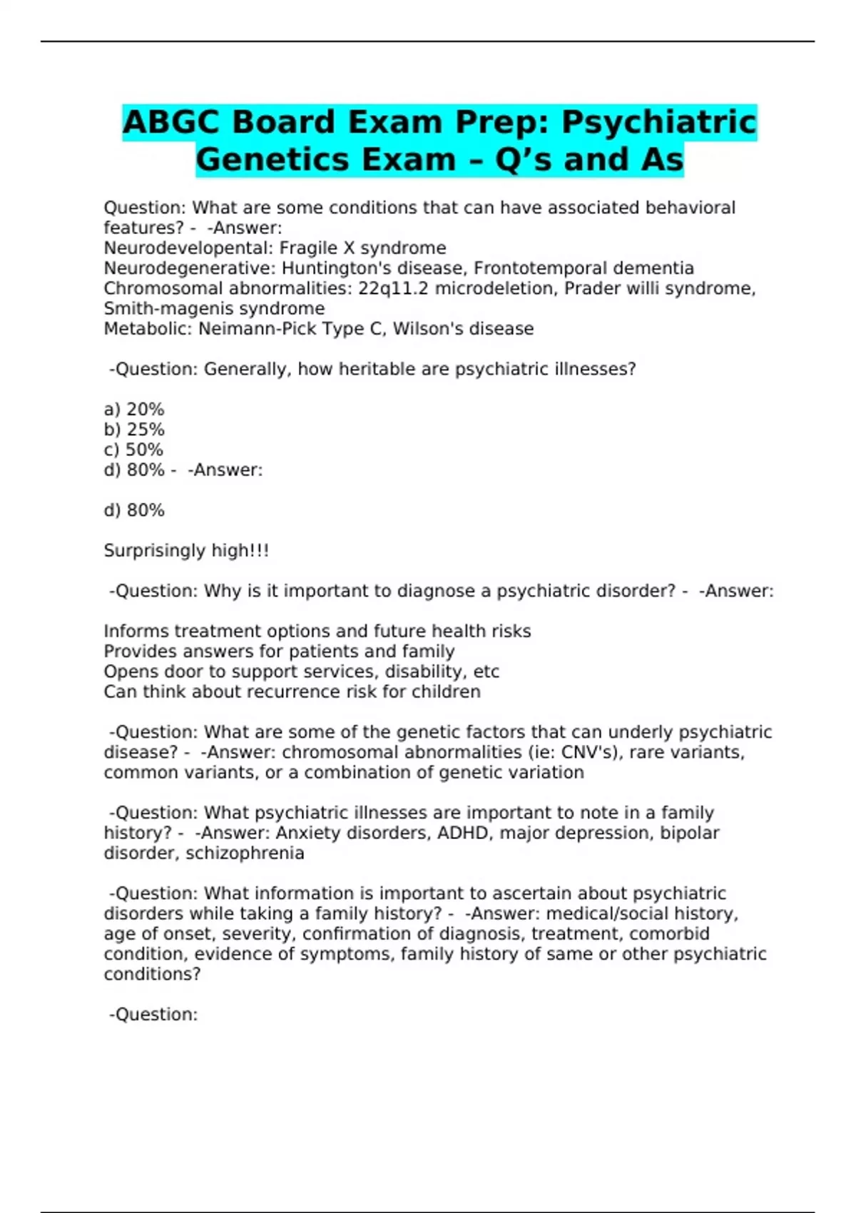 ABGC Board Exam Prep: Psychiatric Genetics Exam – Q’s and As