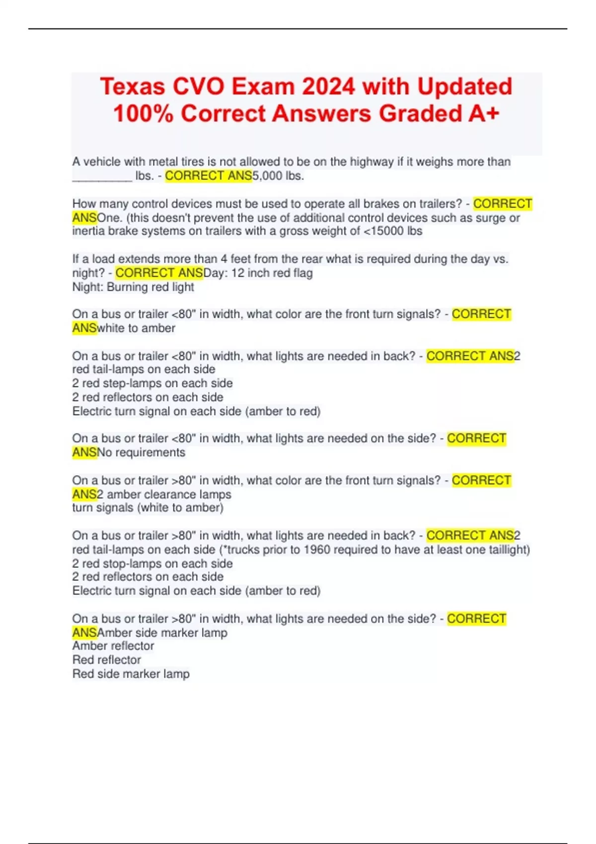 Texas CVO Exam 2024 with Updated 100% Correct Answers Graded A+ ,Texas CVO Exam 2024 with Updated 100% Correct Answers Graded A+