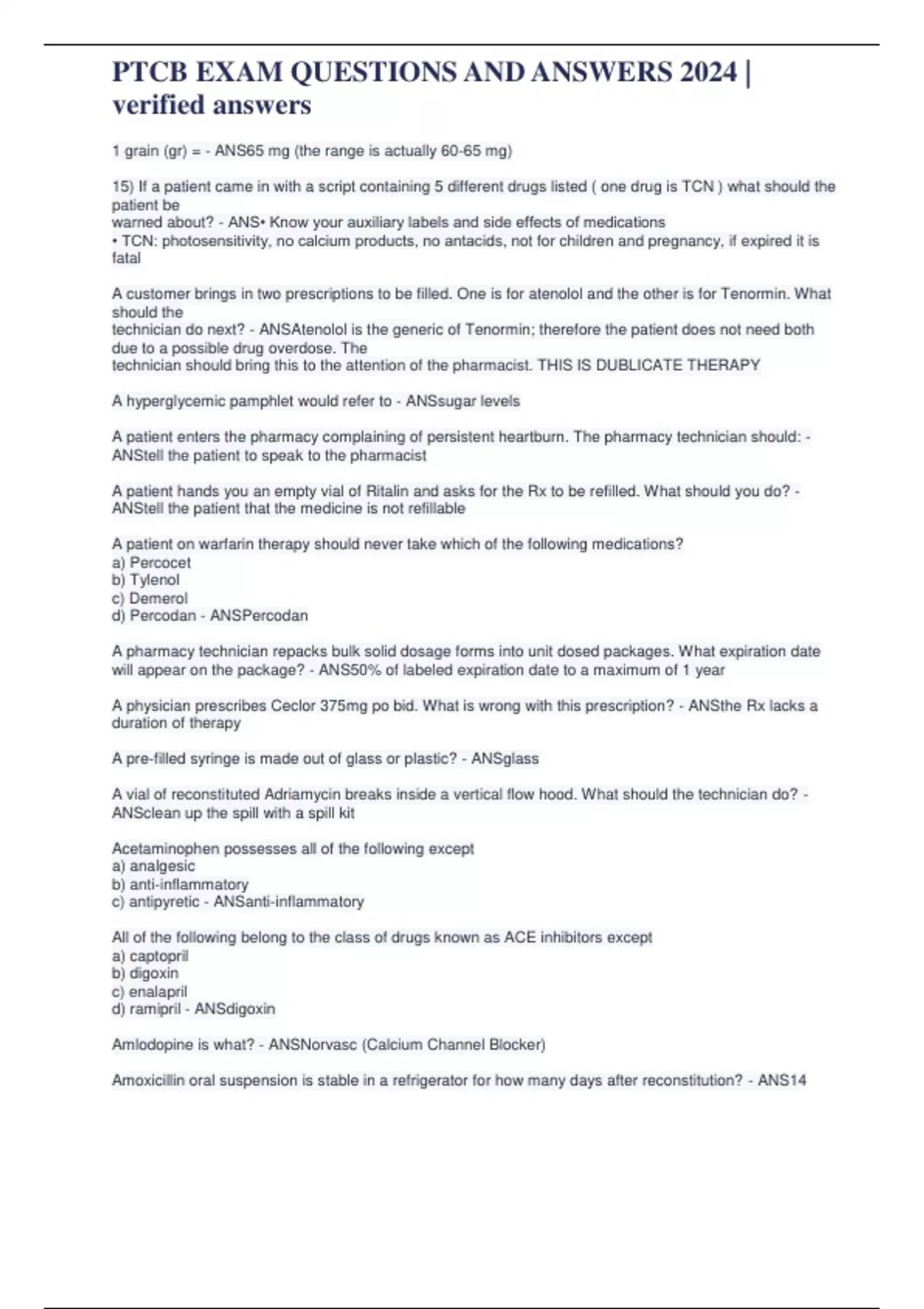 PTCB EXAM QUESTIONS AND ANSWERS 2024 | verified answers