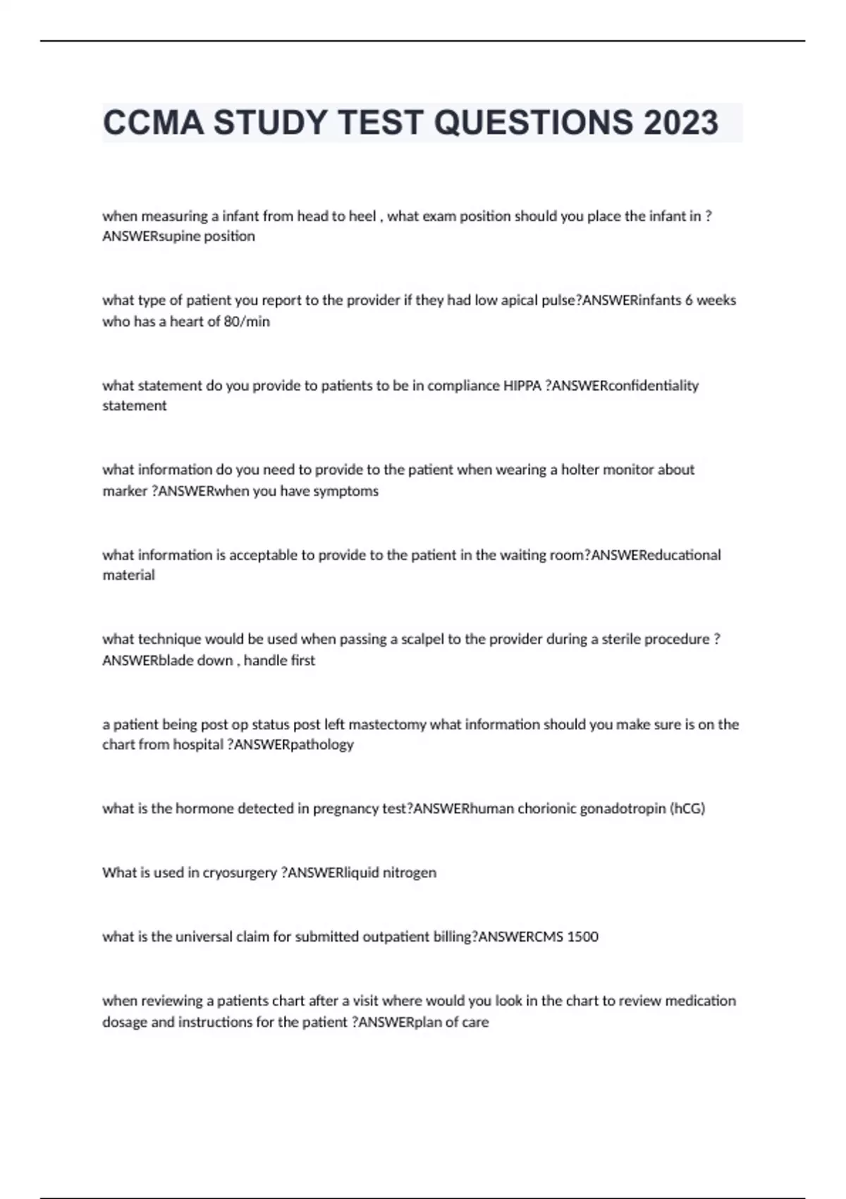 CCMA STUDY TEST QUESTIONS AND ANSWERS