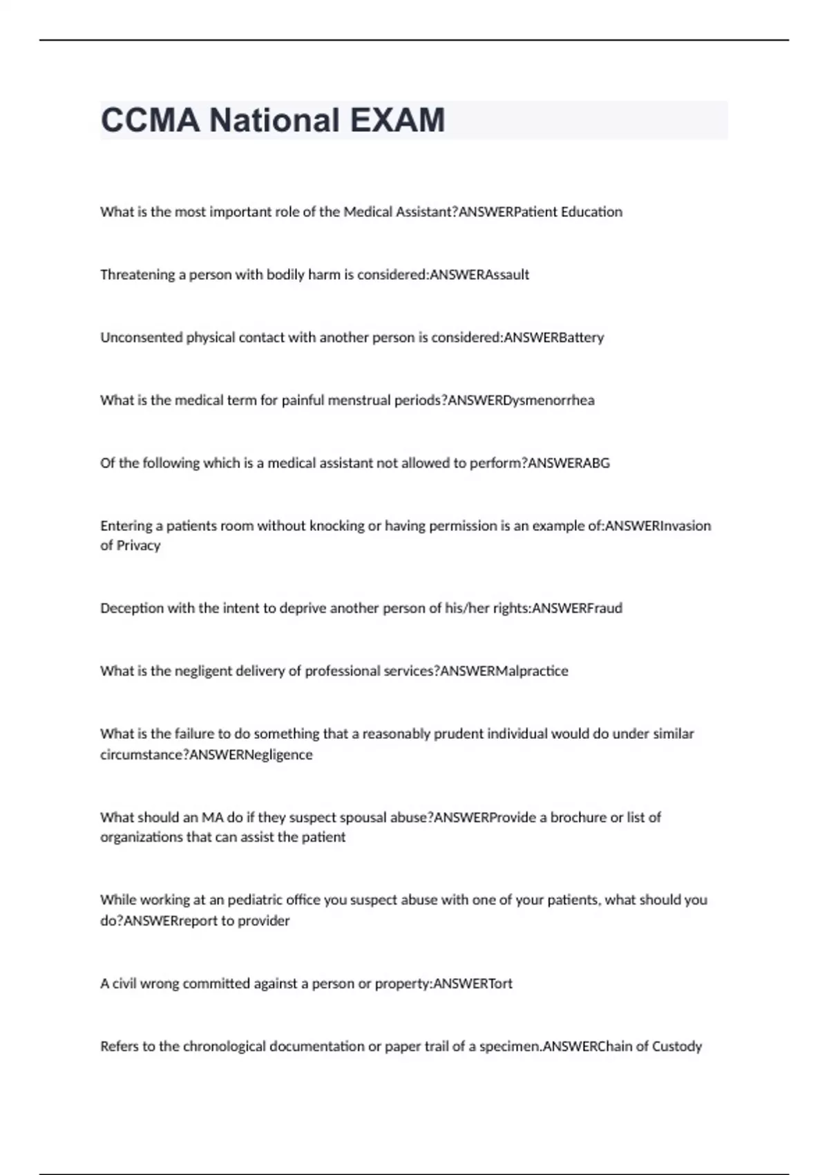 CCMA National EXAM QUESTIONS AND ANSWERS (GRADED A+)