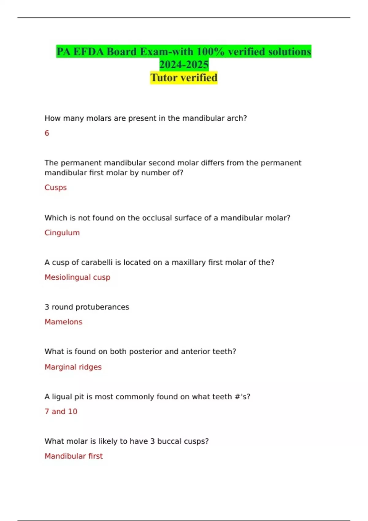 PA EFDA Board Exam-with 100% verified solutions