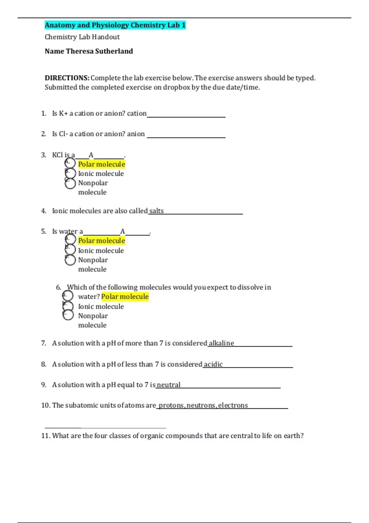Anatomy and Physiology Chemistry Lab 1