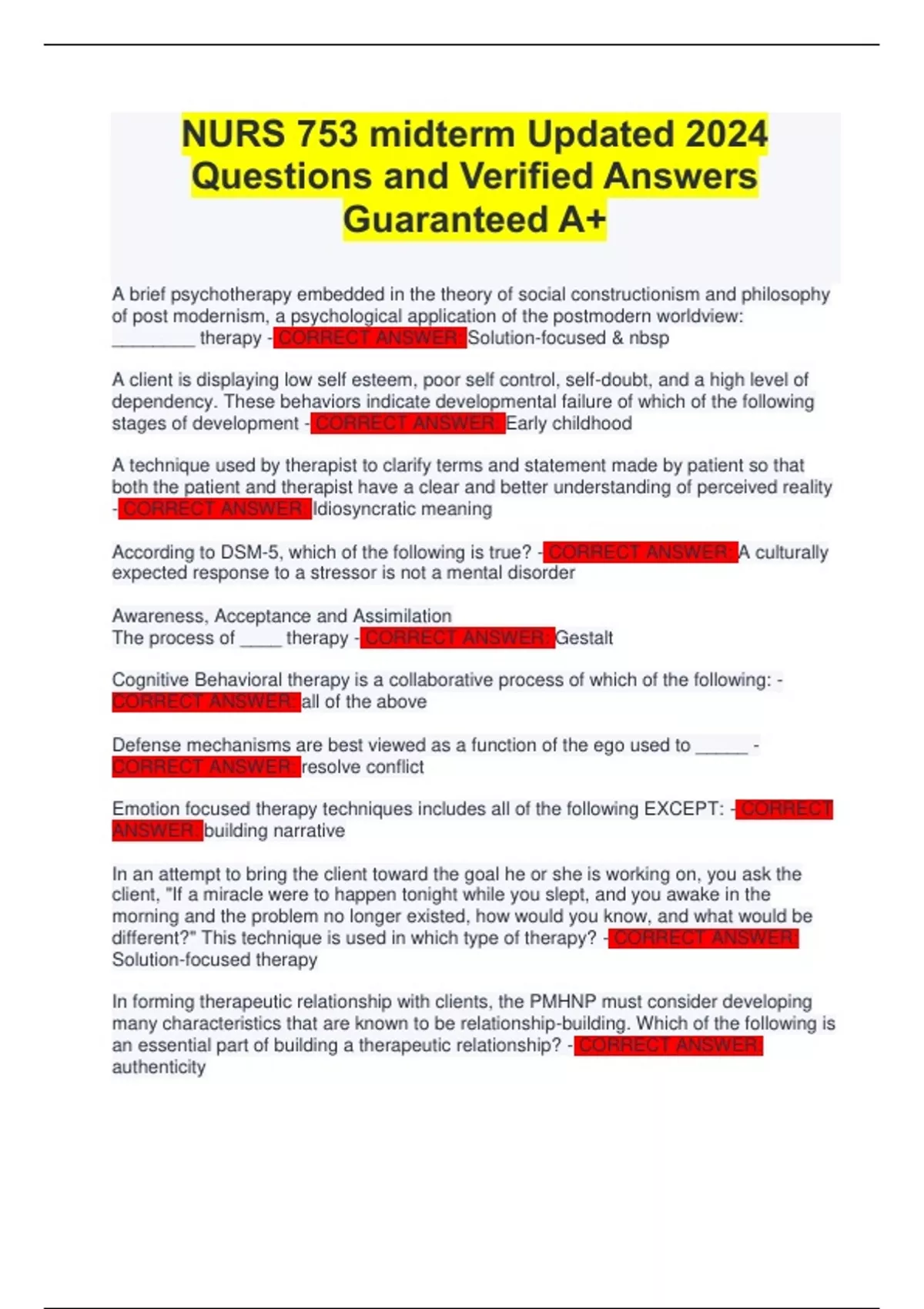 NURS 753 midterm Updated 2024 Questions and Verified Answers Guaranteed A+