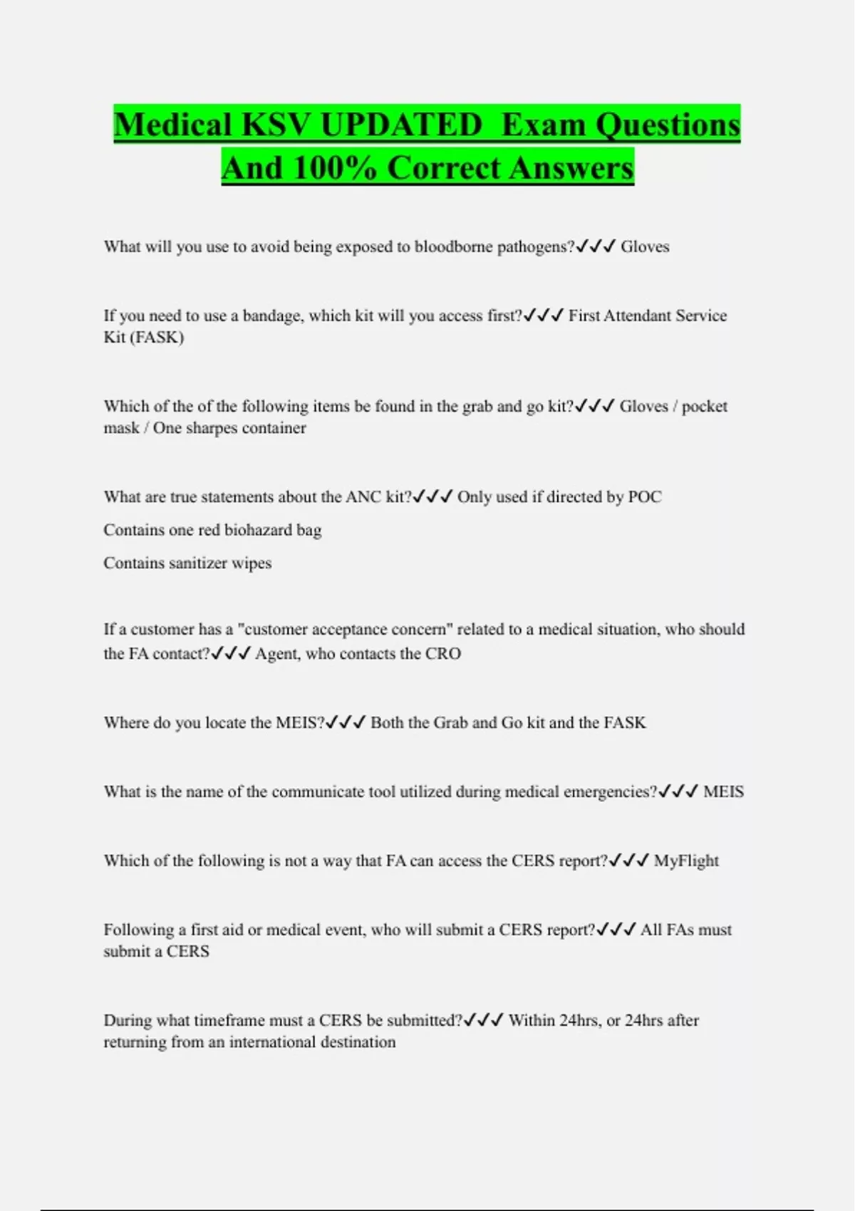Medical KSV UPDATED Exam Questions And 100% Correct Answers