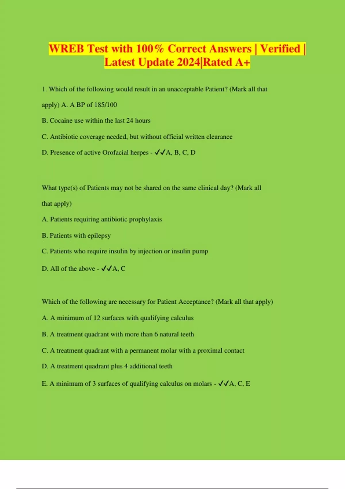 WREB Test with 100% Correct Answers | Verified | Latest Update 2024|Rated A+