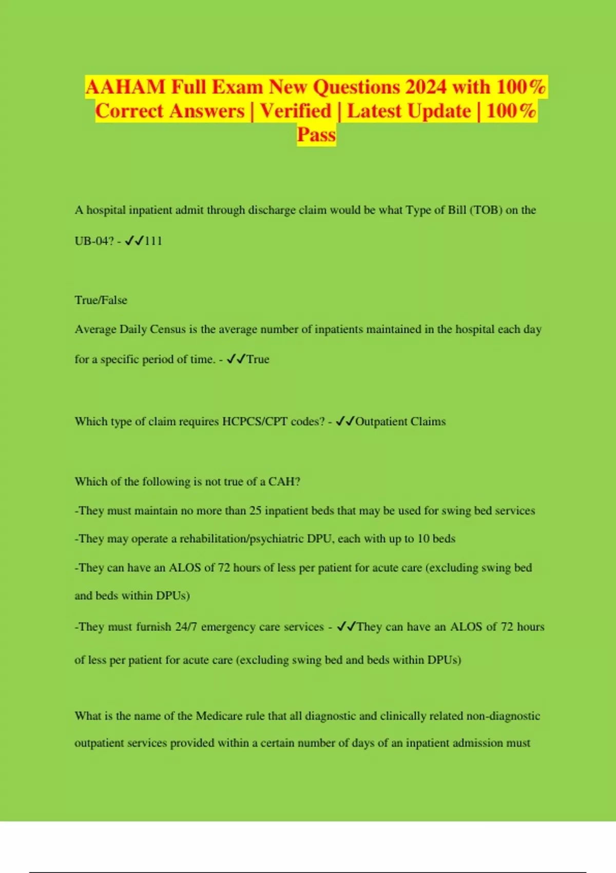 AAHAM Full Exam New Questions 2024 with 100% Correct Answers | Verified | Latest Update | 100% Pass