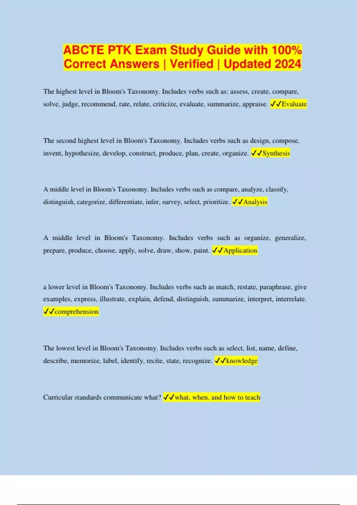 ABCTE PTK Exam Study Guide with 100% Correct Answers | Verified | Updated 2024