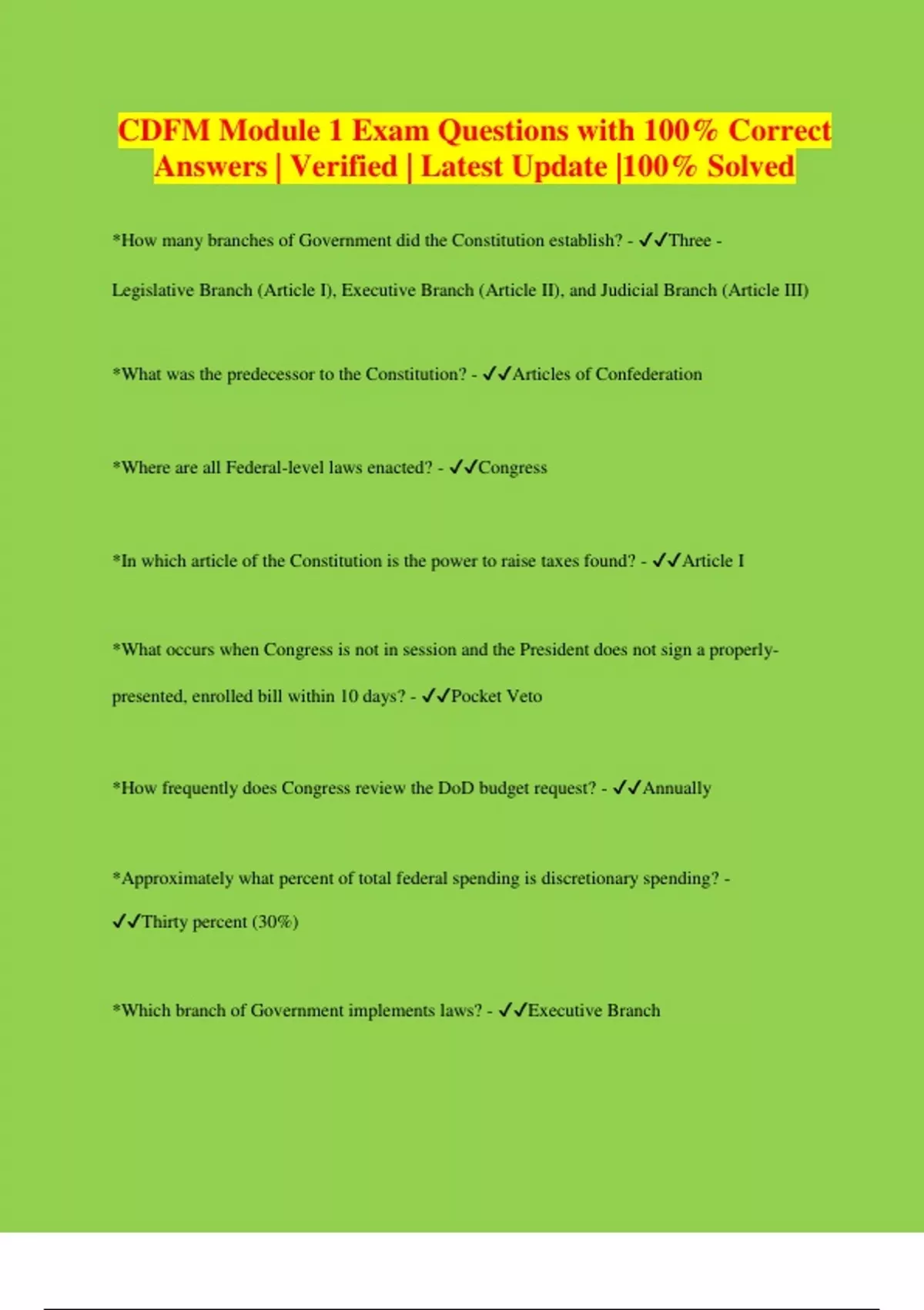 CDFM Module 1 Exam Questions with 100% Correct Answers | Verified | Latest Update |100% Solved
