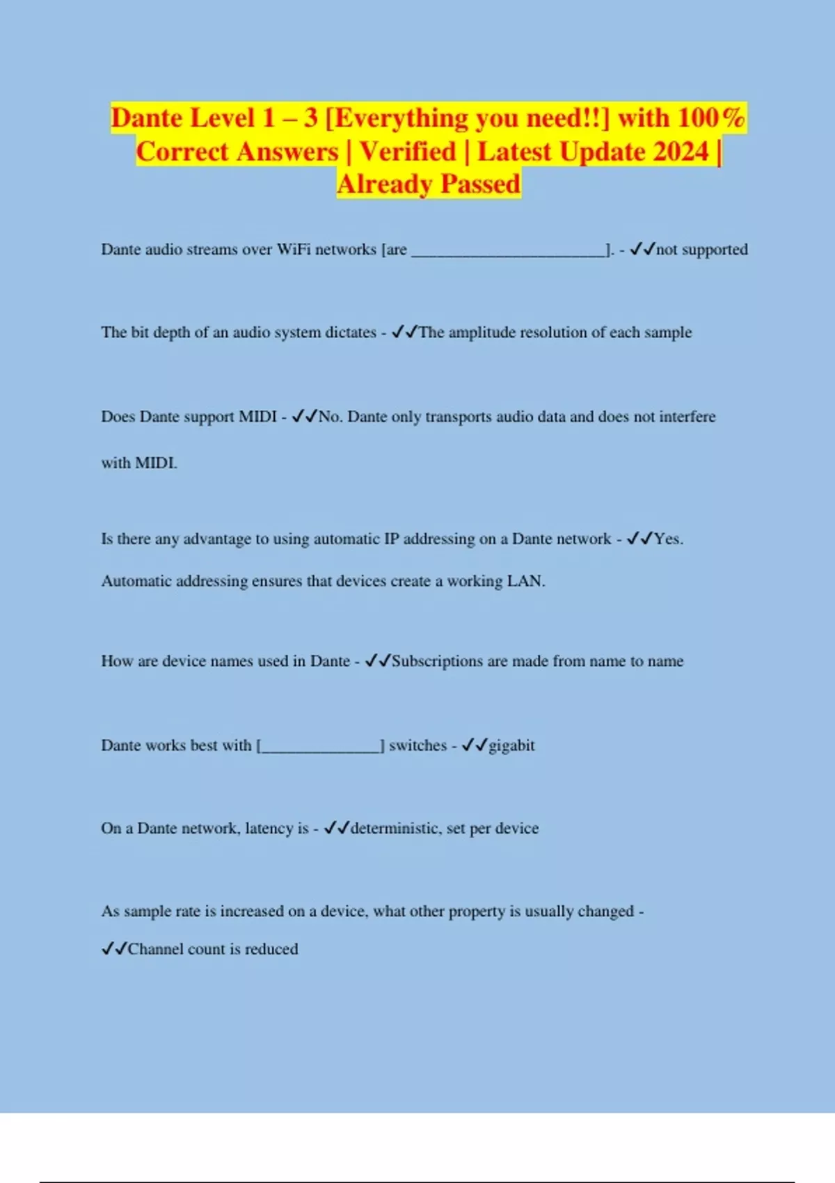 Dante Level 1 – 3 [Everything you need!!] with 100% Correct Answers | Verified | Latest Update 2024 | Already Passed
