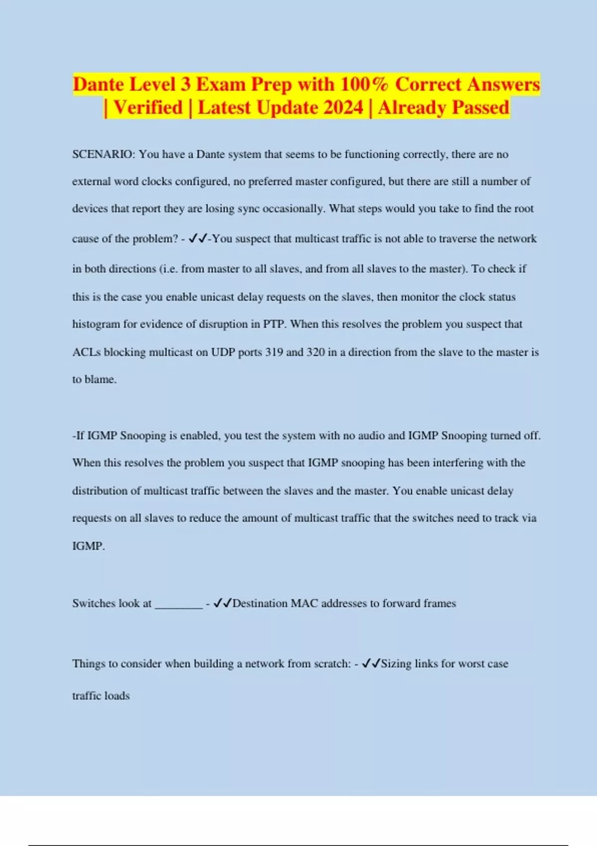 Dante Certification Bundled Exams Together with complete solutions Questions and Answers Graded A+ , Latest Update (Verified Answers) (Full Solution Pack)