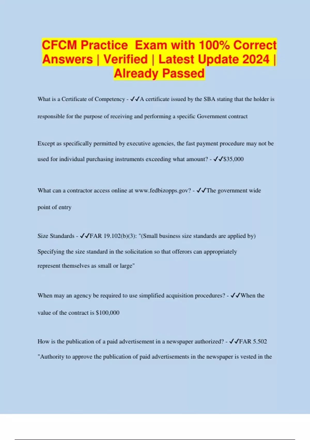 CFCM Practice Exam with 100% Correct Answers | Verified | Latest Update 2024 | Already Passed