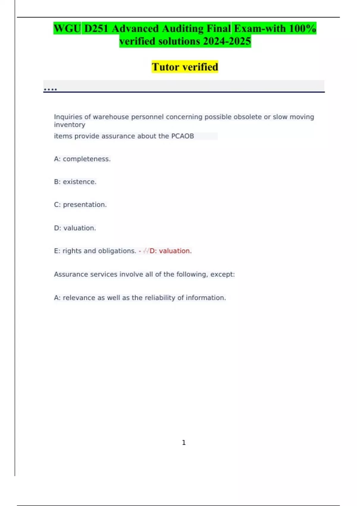 WGU D251 Advanced Auditing Final Exam-with 100% verified solutions