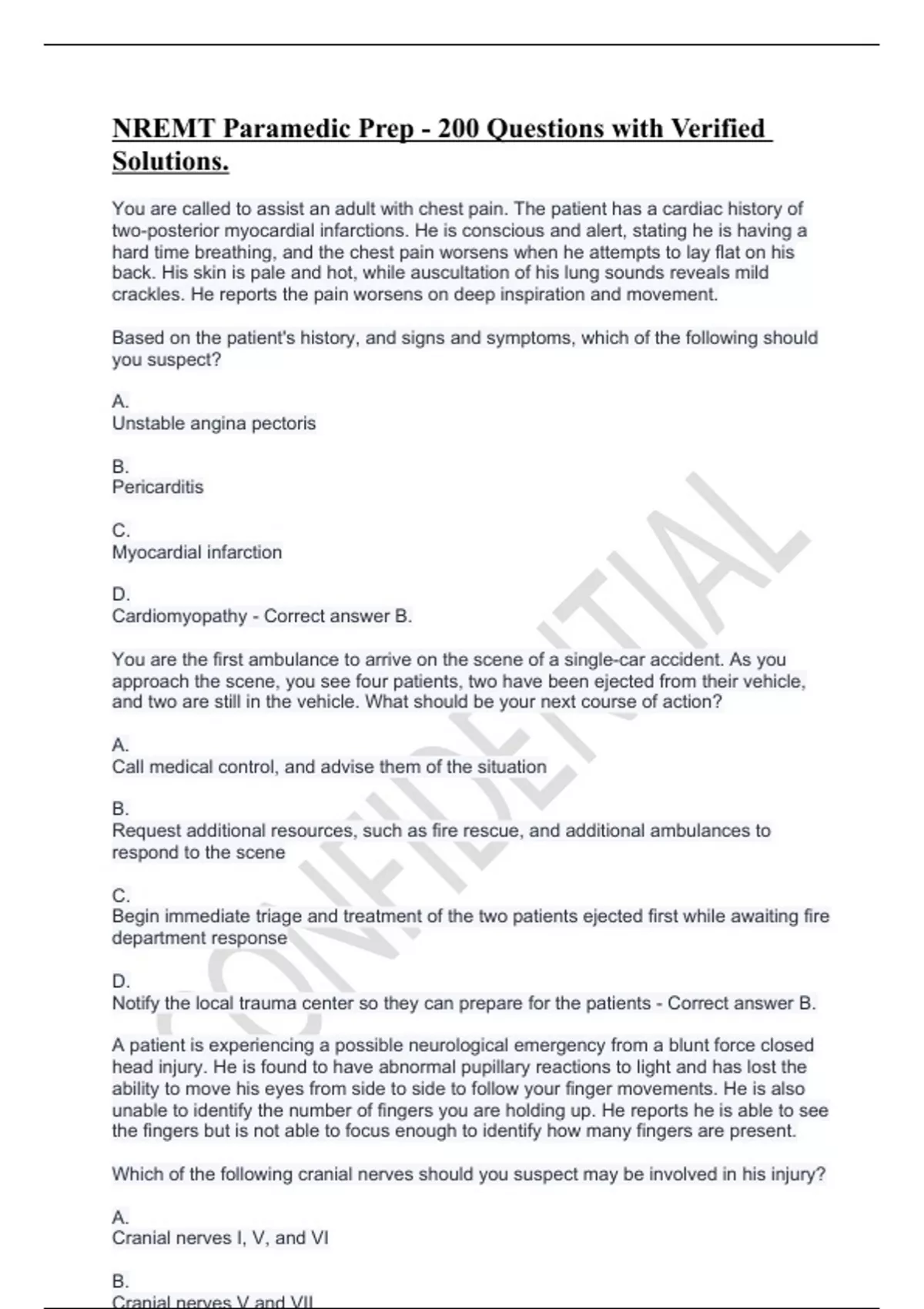 NREMT Paramedic Prep - 200 Questions with Verified Solutions.