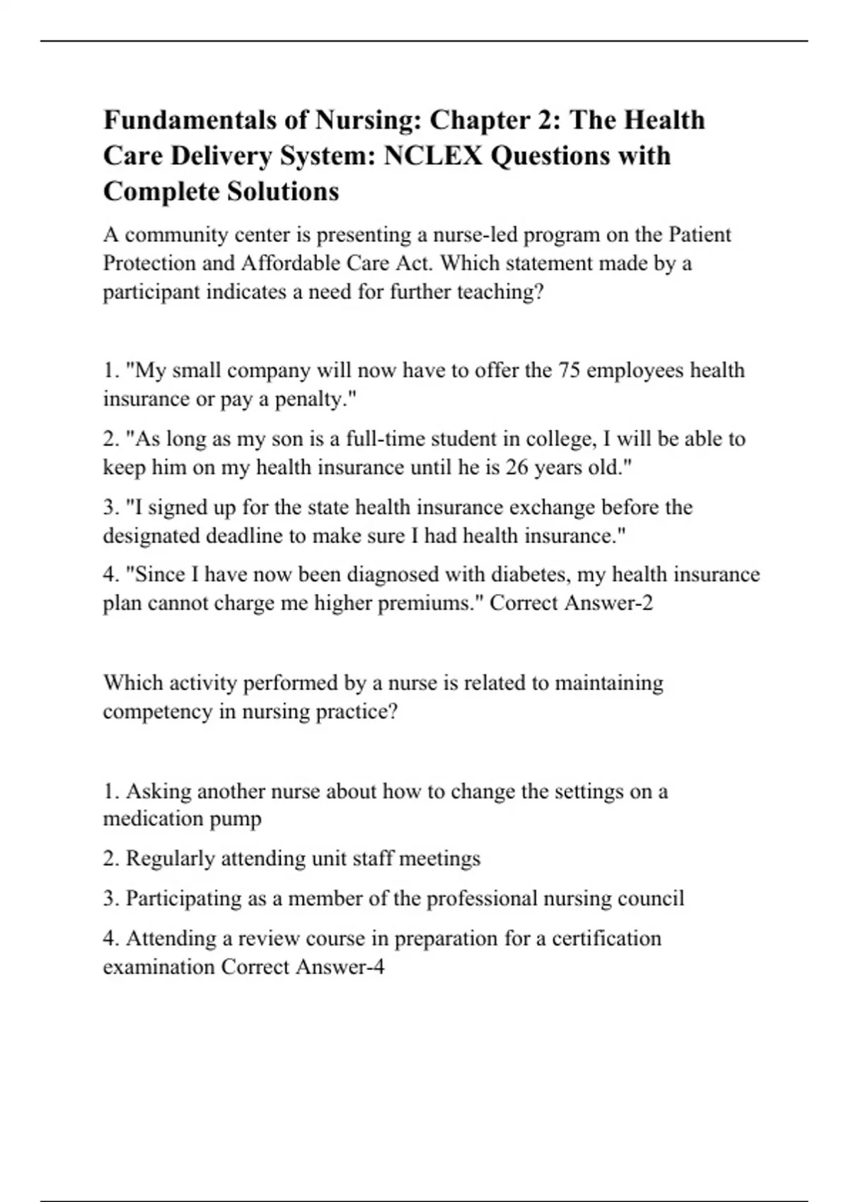 Fundamentals of Nursing: Chapter 2: The Health Care Delivery System: NCLEX Questions with Complete Solutions