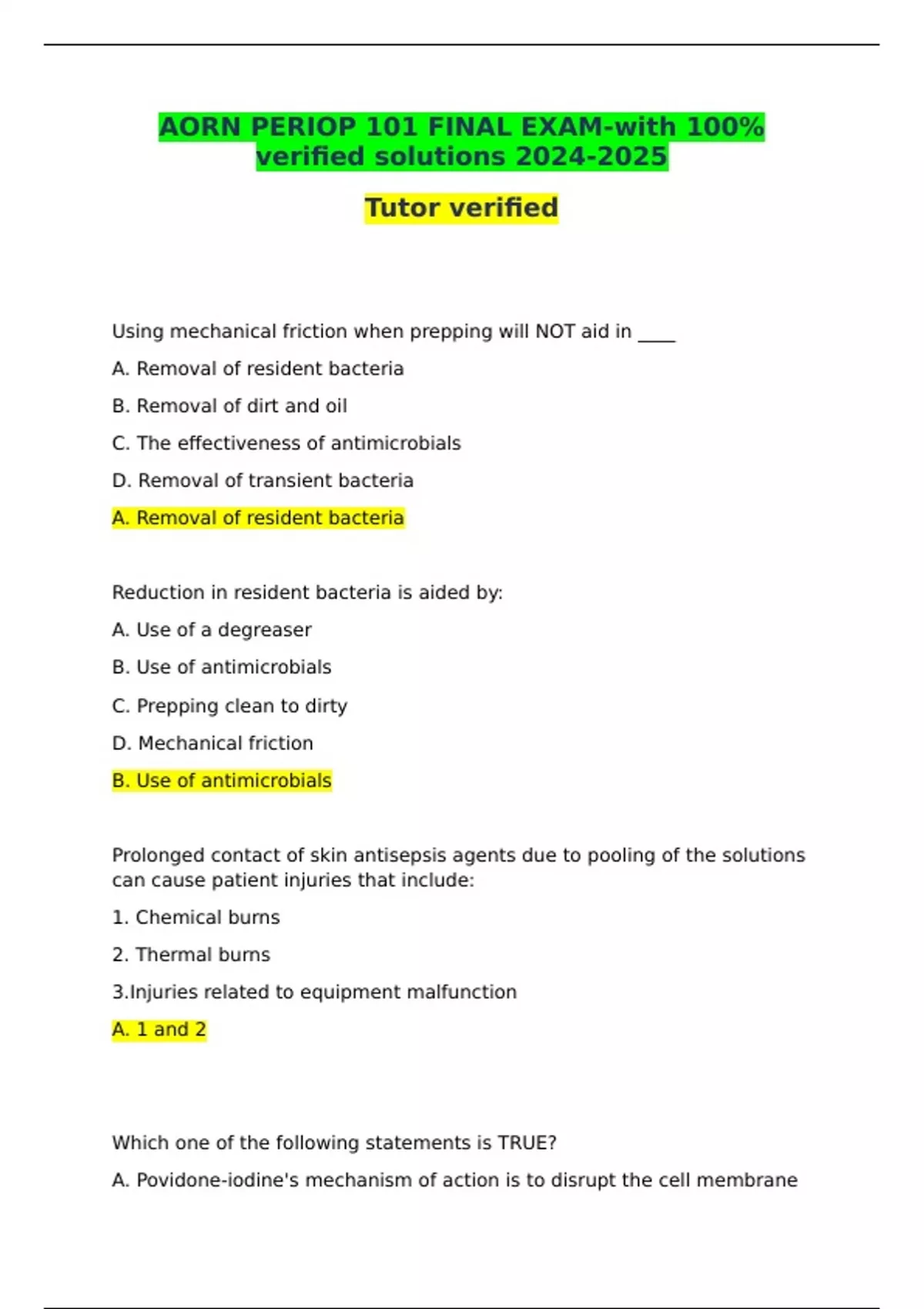 AORN PERIOP 101 FINAL EXAM-with 100% verified solutions