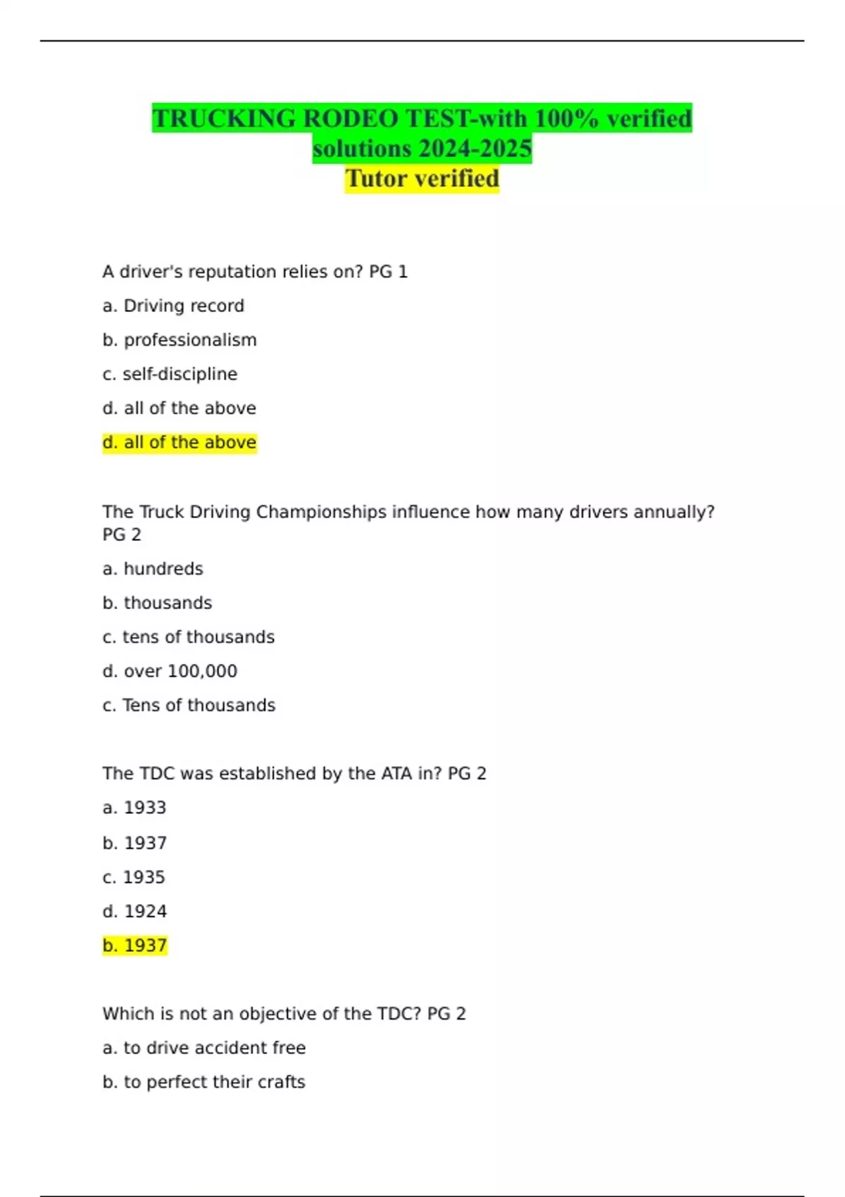 TRUCKING RODEO TEST-with 100% verified solutions