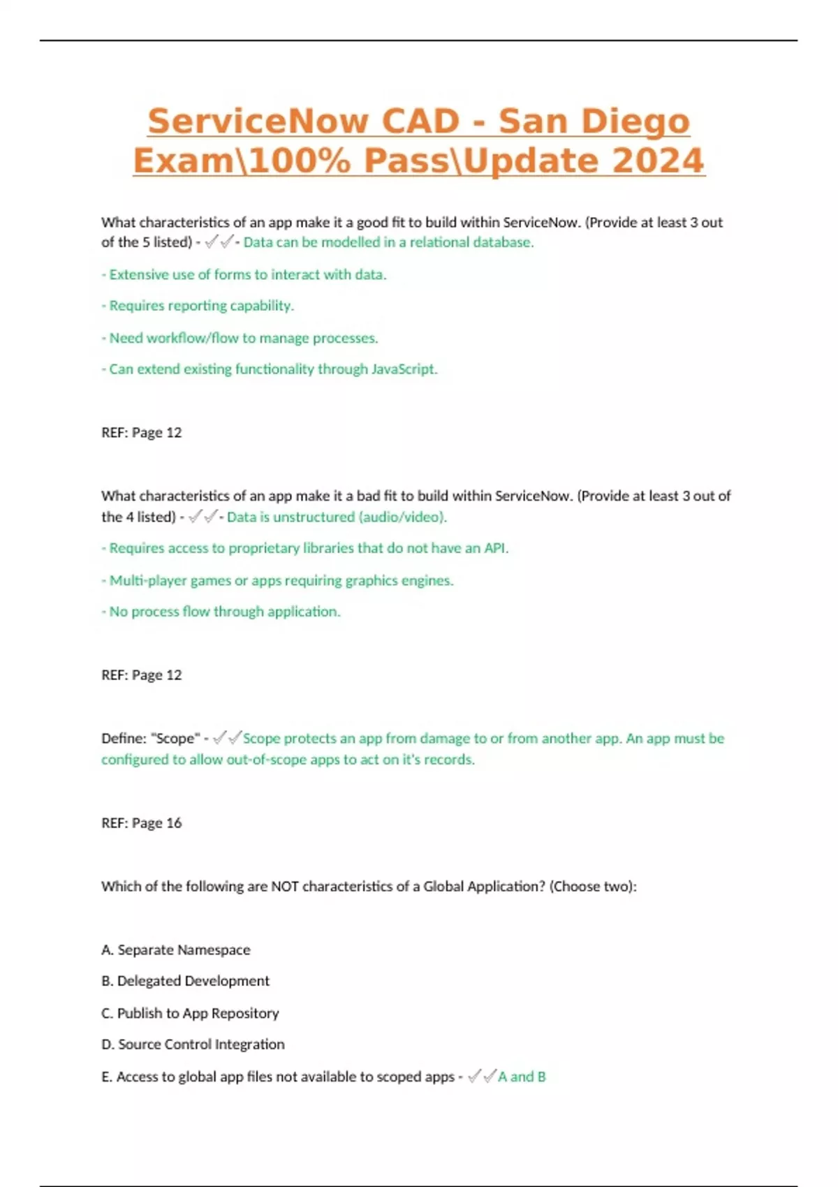ServiceNow CAD - San Diego Exam100% PassUpdate 2024